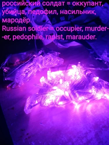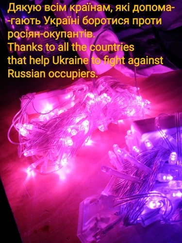 Гірлянда супер! Гарний товар, сміливо можна рекомендувати! Гарно виглядає в поєднанні з рожевою. Після 26.02.2014р., а тим більше після 24.02.2022р. - росіян-окупантів в Україні чекає лише смерть. росіяни = нелюди.