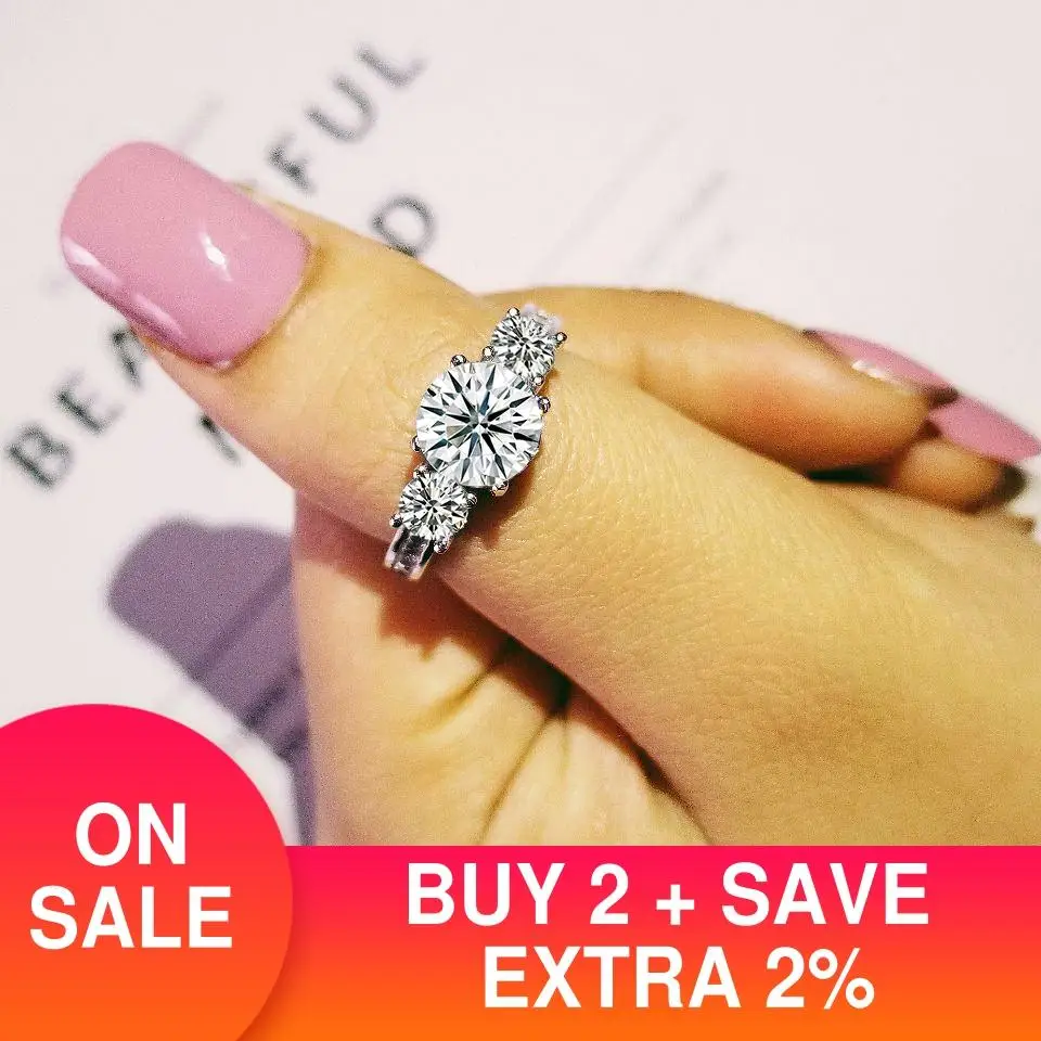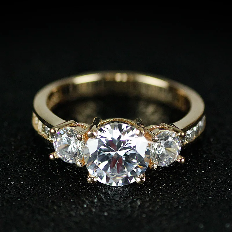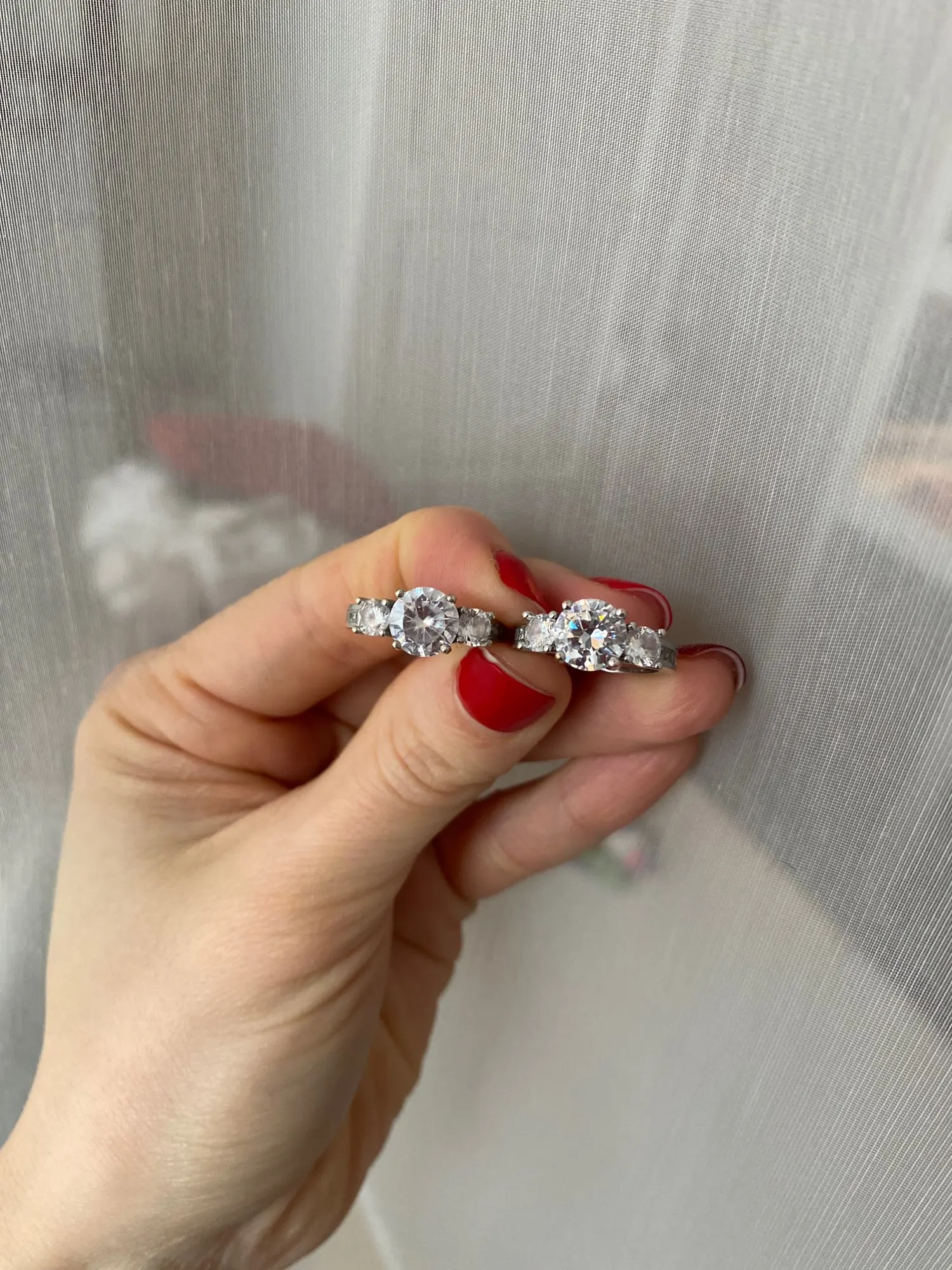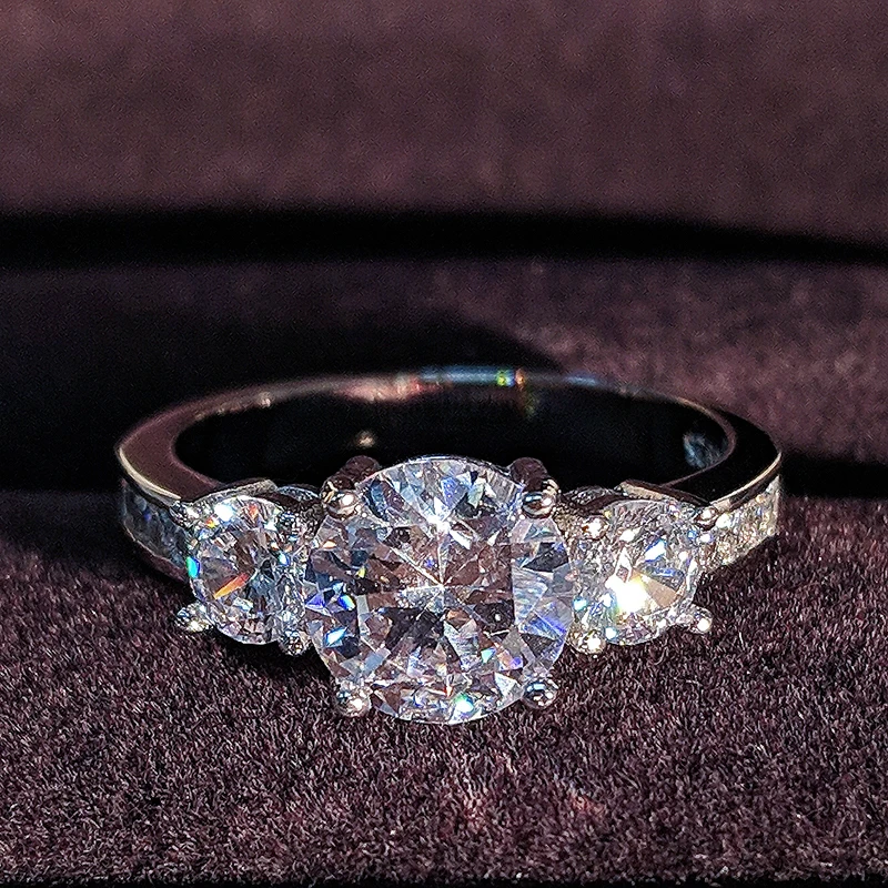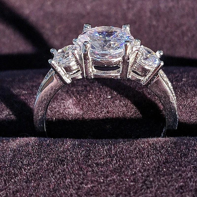 Кольцо обручальное из серебра 925 пробы с тремя камнями, 3 карата