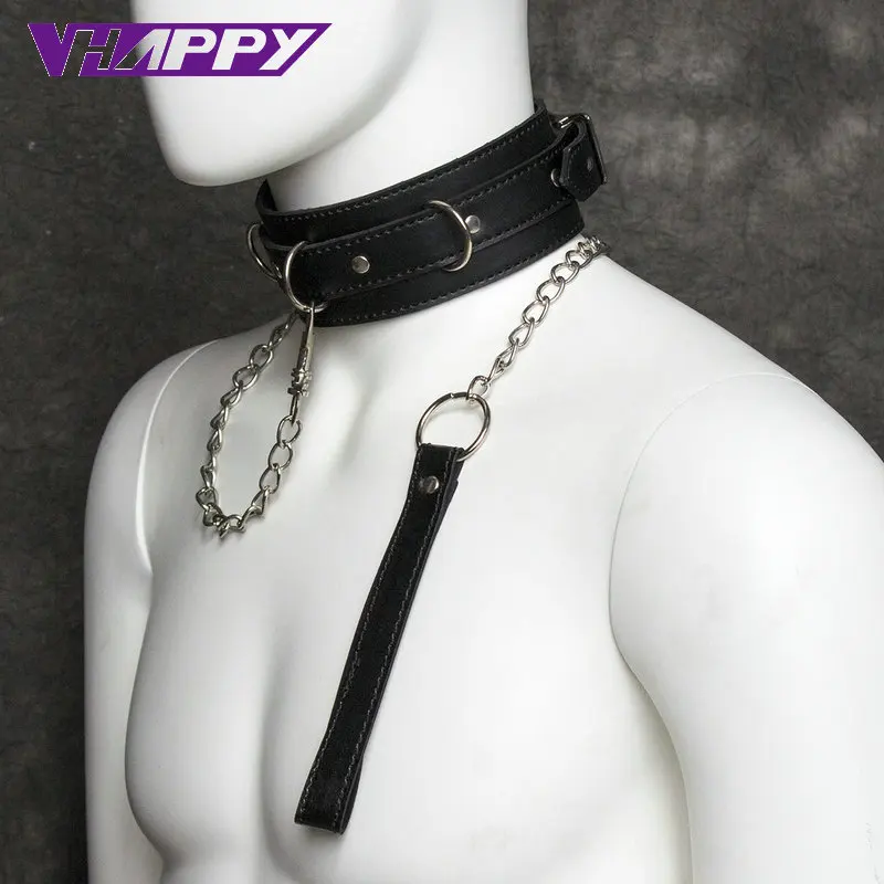 Черная кожа БДСМ фетиш бондаж секс ошейник и поводок игры для взрослых ошейники секс-игрушки рабский ошейник эротический шейный ошейник VP-CR003037A