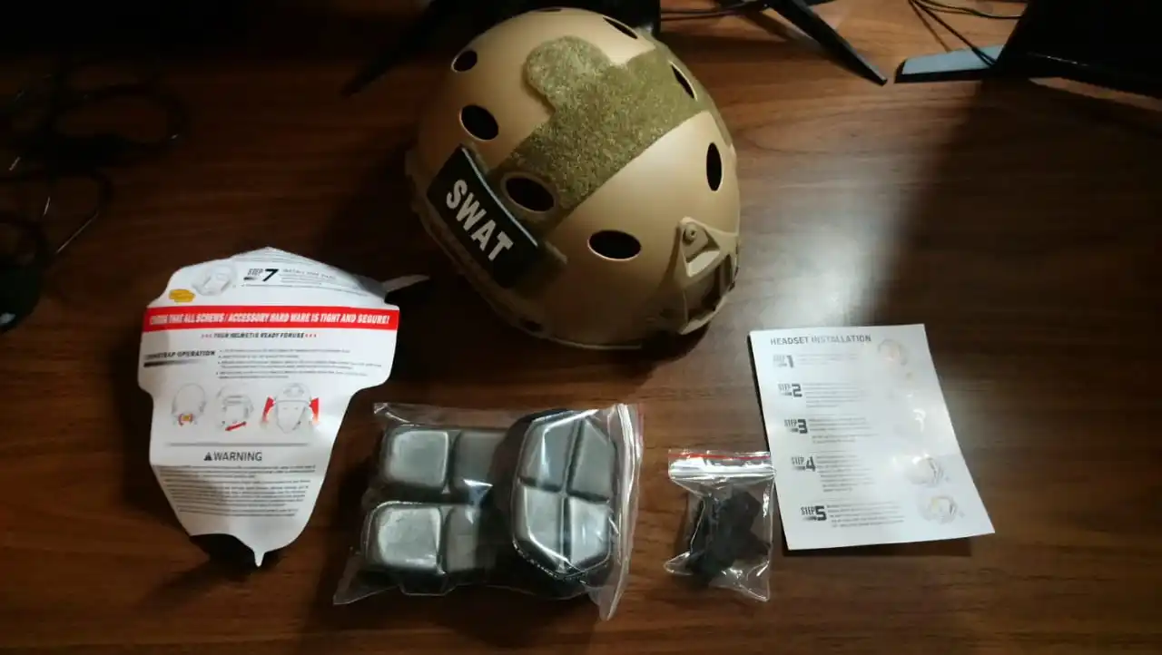 Шлем очень легко регулируется, поставляется с дополнительной подкладкой, которая крепится на липучке. Плюс, я дал пластырь «swat», я не хотел использовать его, но это подарок! Также предлагаем аксессуары для рельсов. В моем случае я также купил чехол, который делает его выглядеть намного лучше.