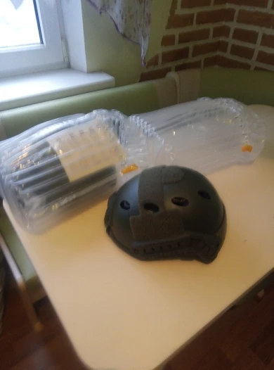Доставка быстрая ( для Китая) всего 14 дней. Упаковано хорошо. Качество материалов на 4+. Сразу убрал 2 боковые вставки, т.к. голова 61-го размера. Дополнительно в комплекте идут ещё 4 вставки. Плюсом положили патч "SWAT" (нафиг не нужный). Продавцом доволен. Рекомендую. P.S. это был пробный заказ, для оценки качества шлема. Будем заказывать у этого продавца на всю команду.