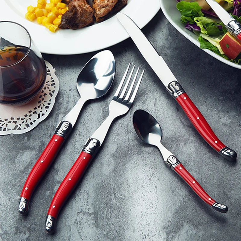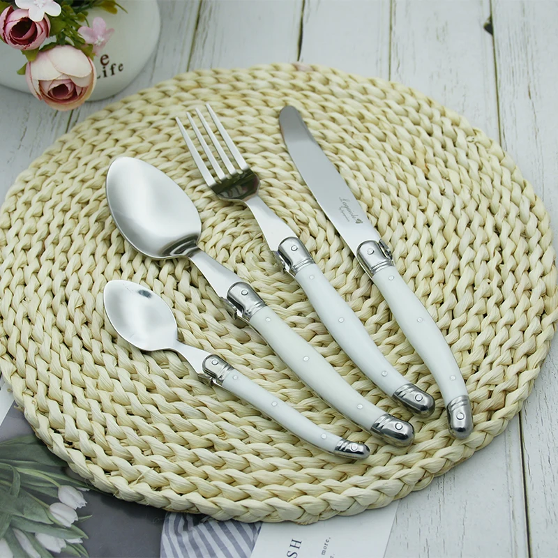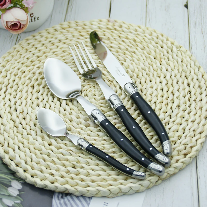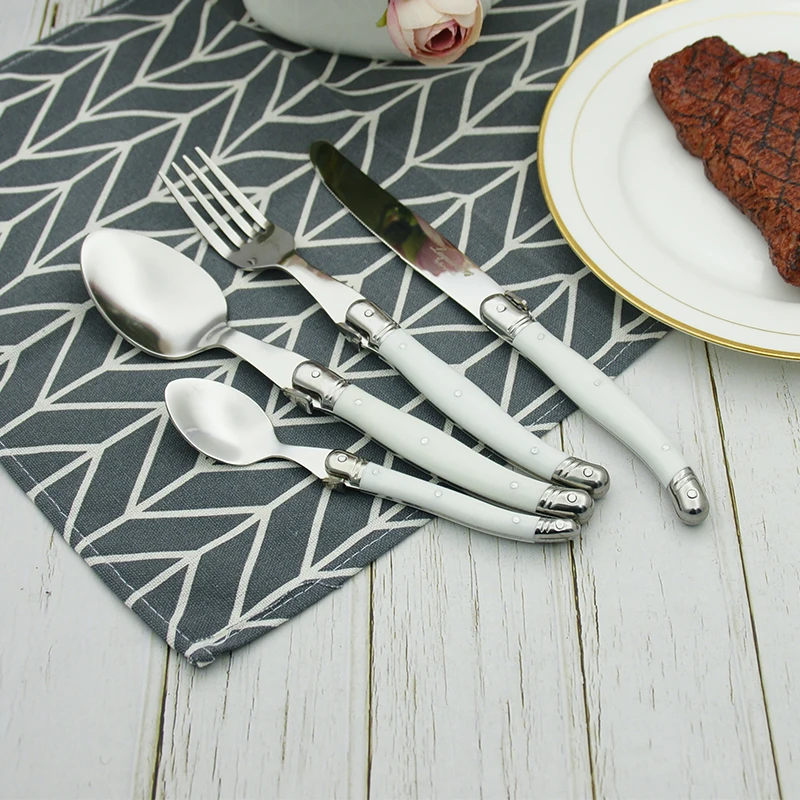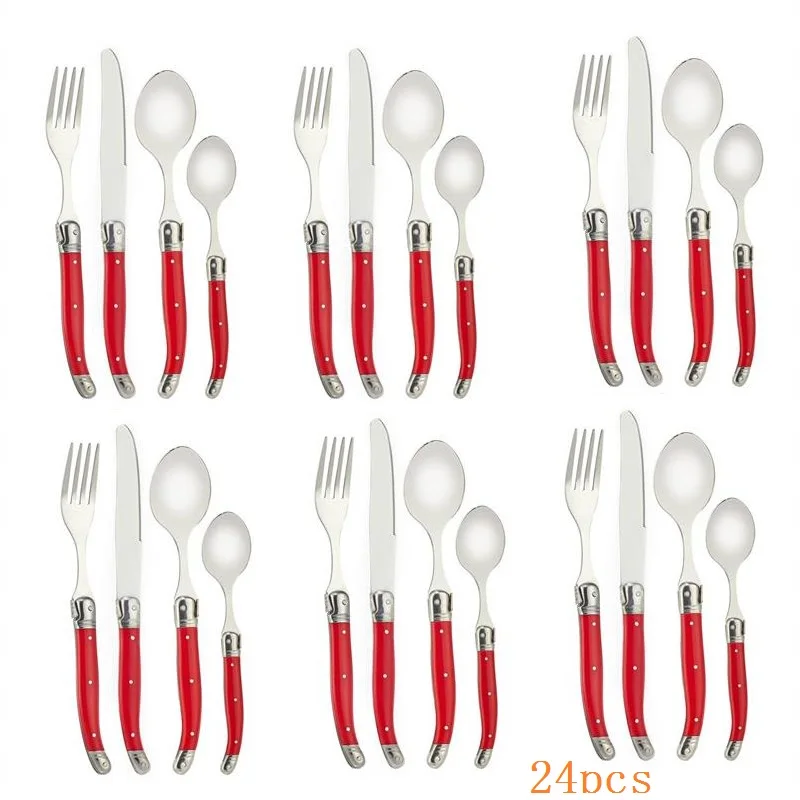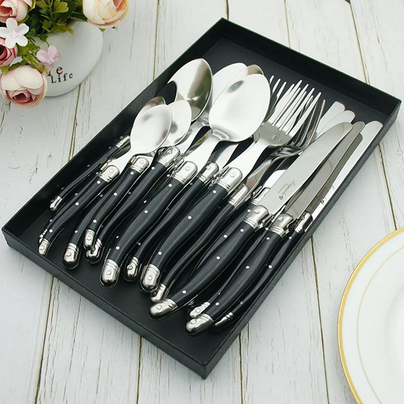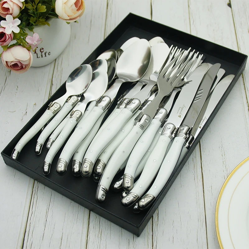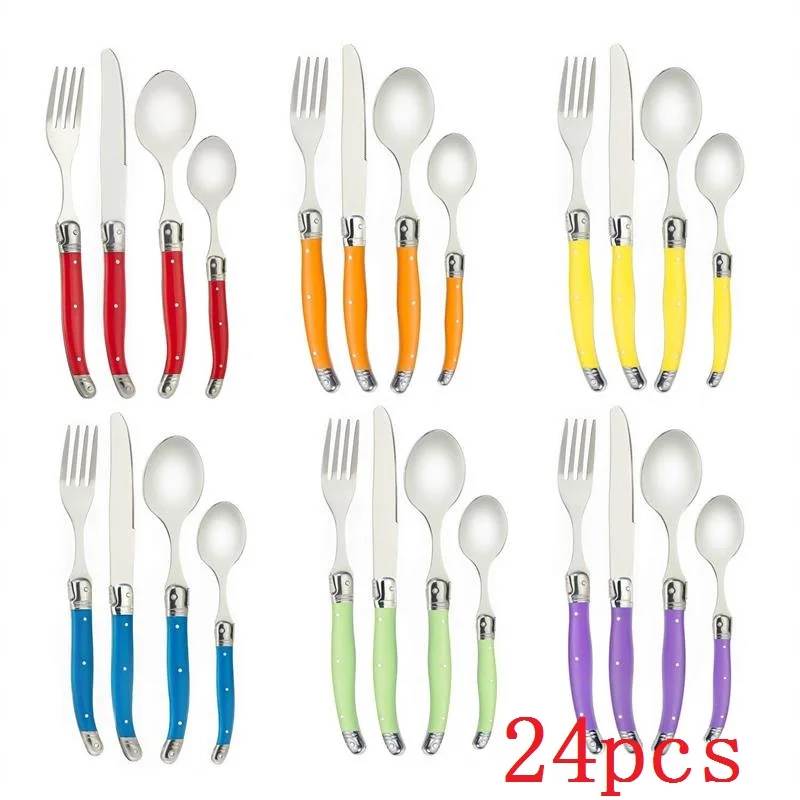 24 шт Черный Laguiole посуда Нержавеющаясталь набор столовых приборов Белый ABS Пластик ручки ужин набор столовых приборов круглый стейк нож вилка