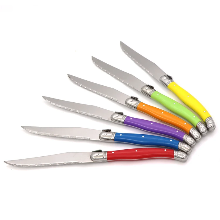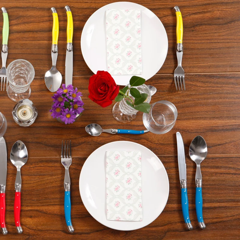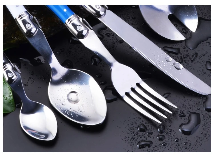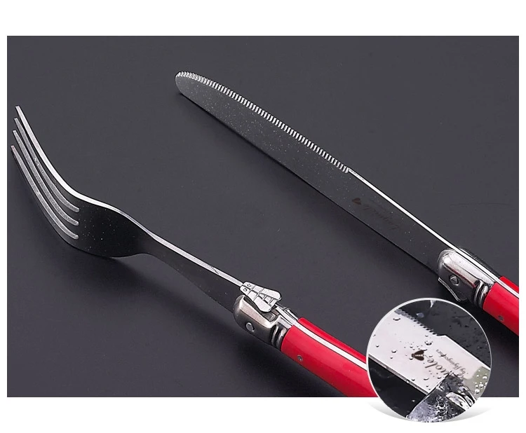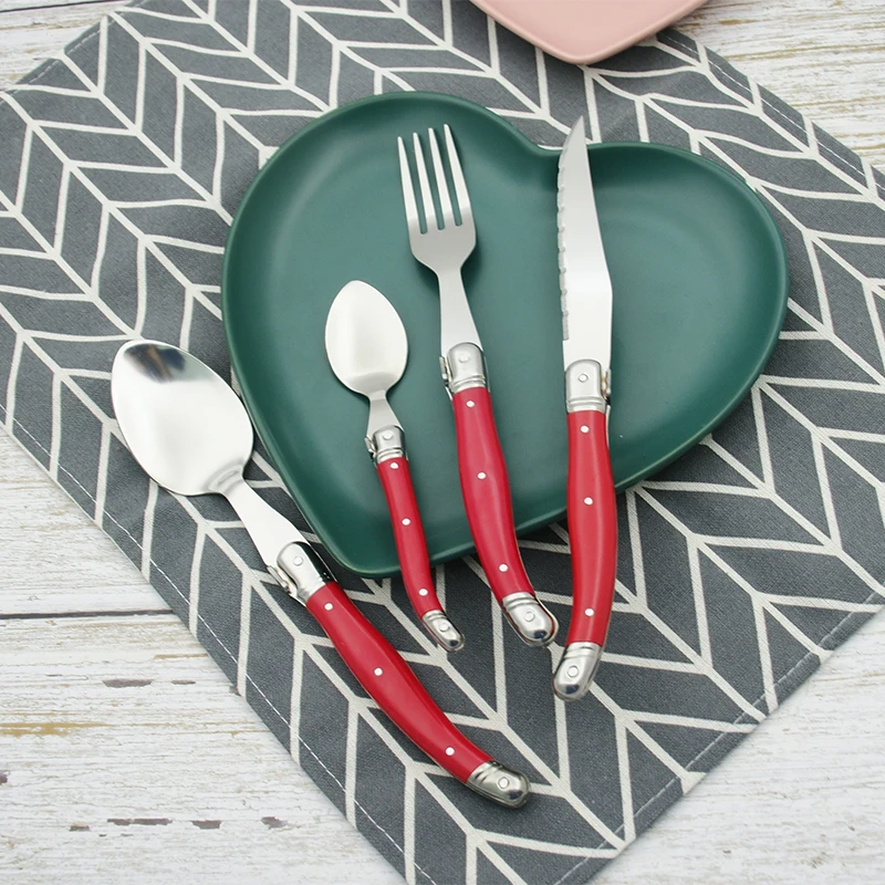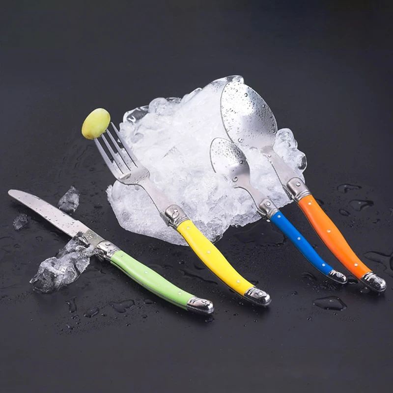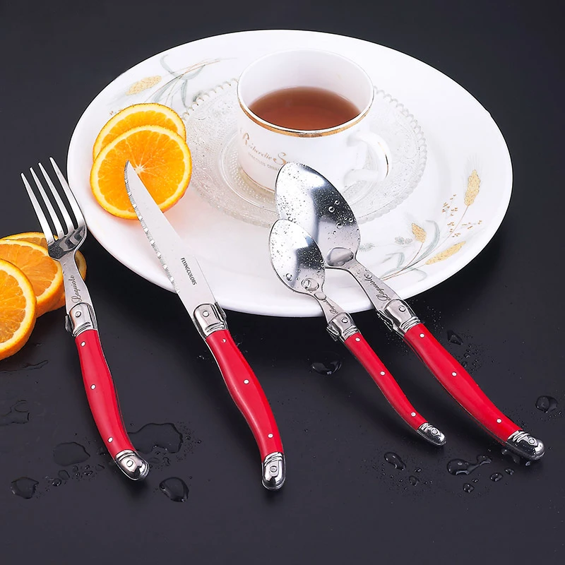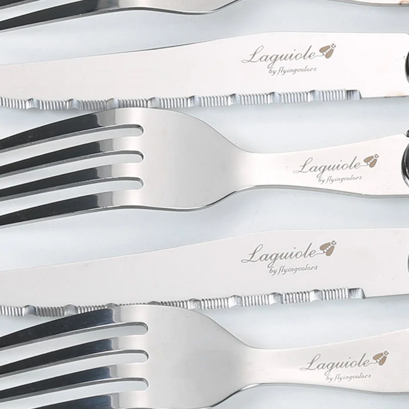 24 шт Черный Laguiole посуда Нержавеющаясталь набор столовых приборов Белый ABS Пластик ручки ужин набор столовых приборов круглый стейк нож вилка