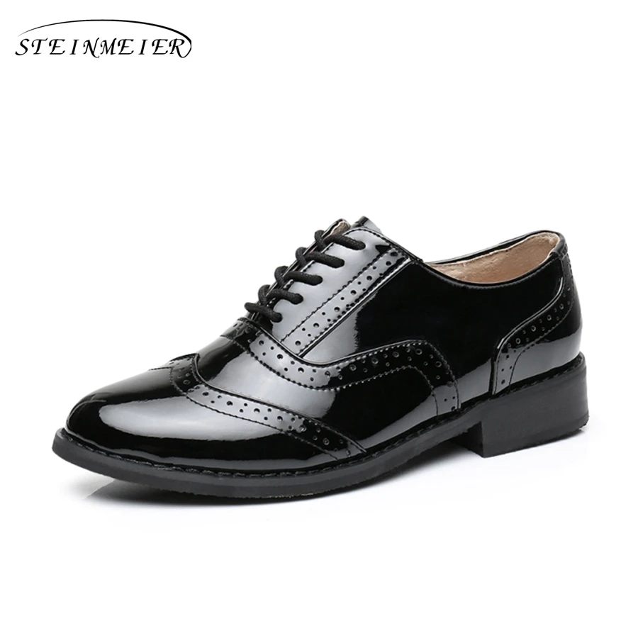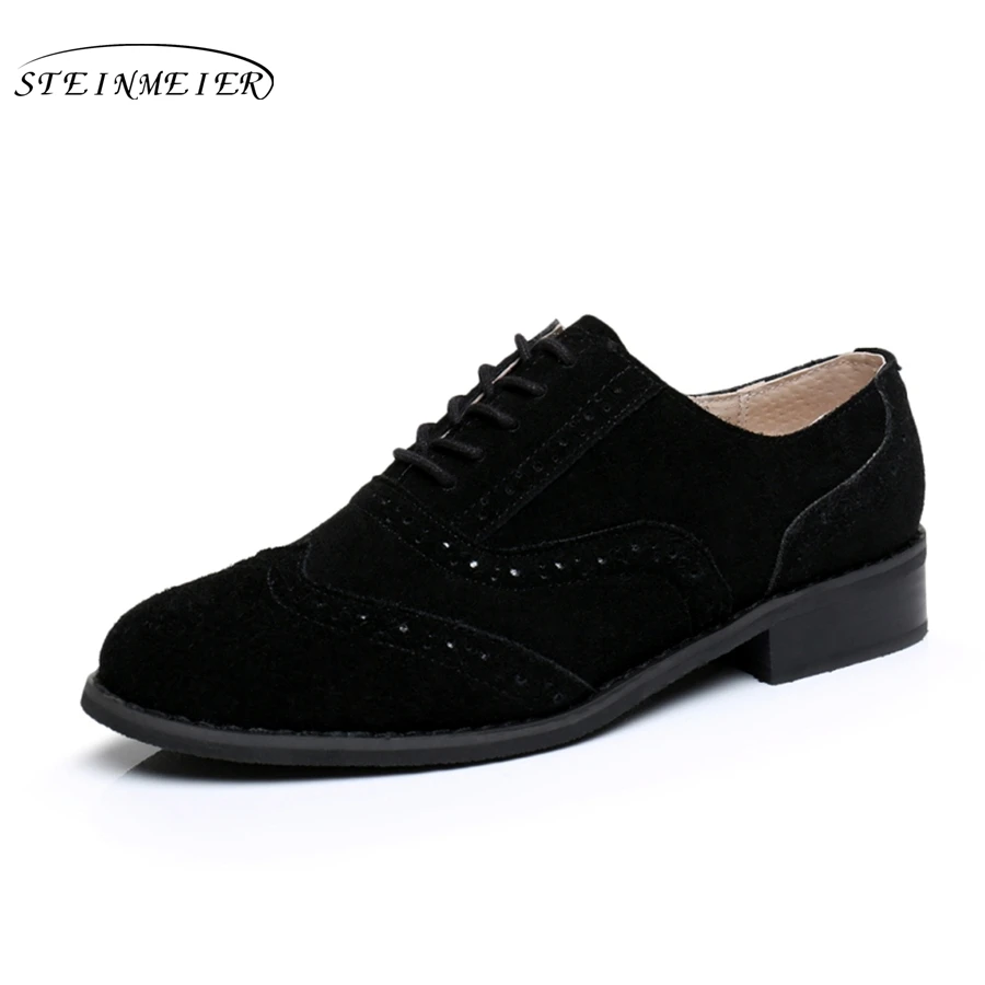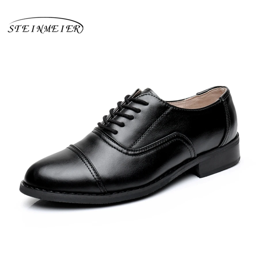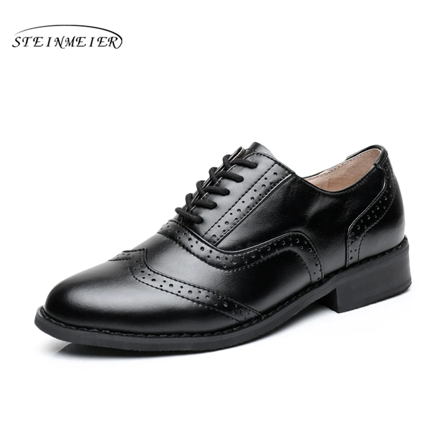 Женские винтажные Туфли-оксфорды из натуральной коровьей кожи, на плоской подошве, черные, весна 2022