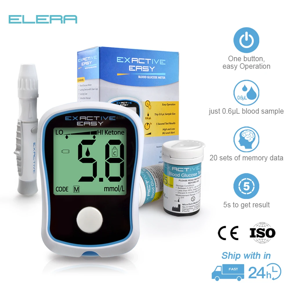 Глюкометр ELERA медицинский для измерения уровня сахара в крови