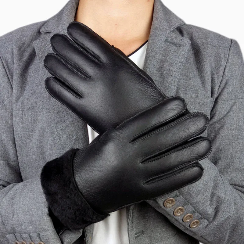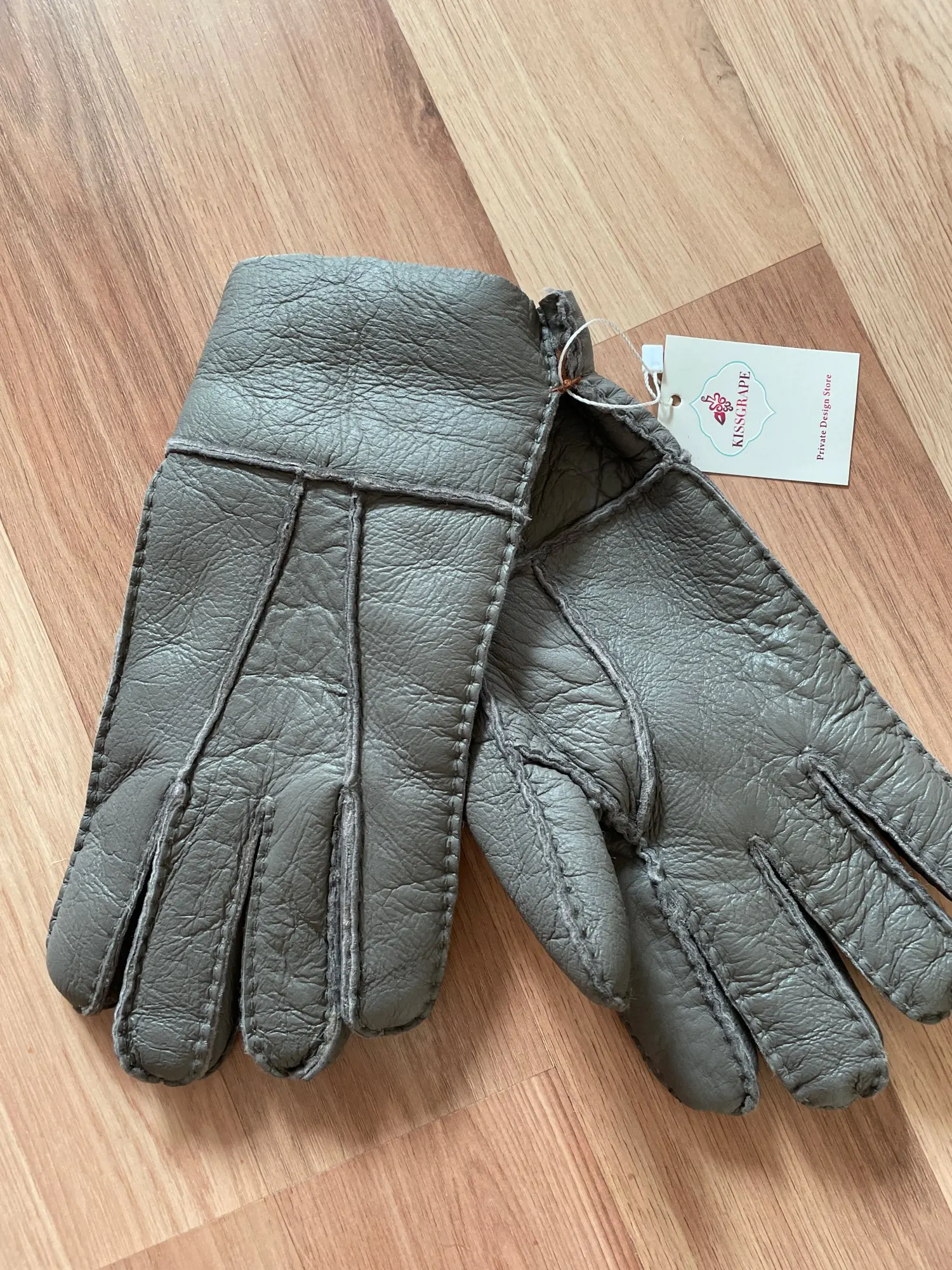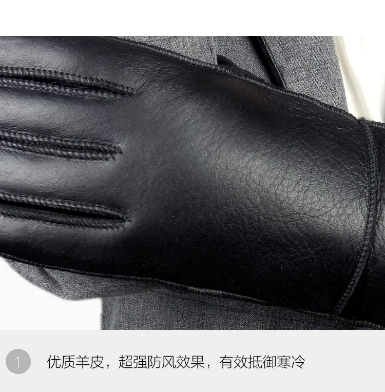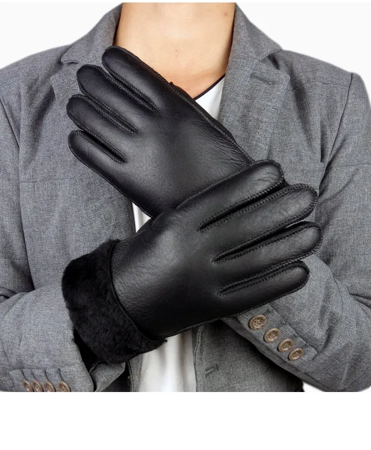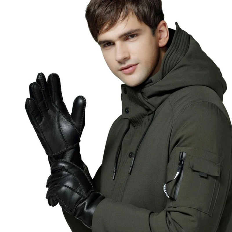 Мужские перчатки из натуральной овечьей кожи, зимние теплые шерстяные перчатки ручной работы