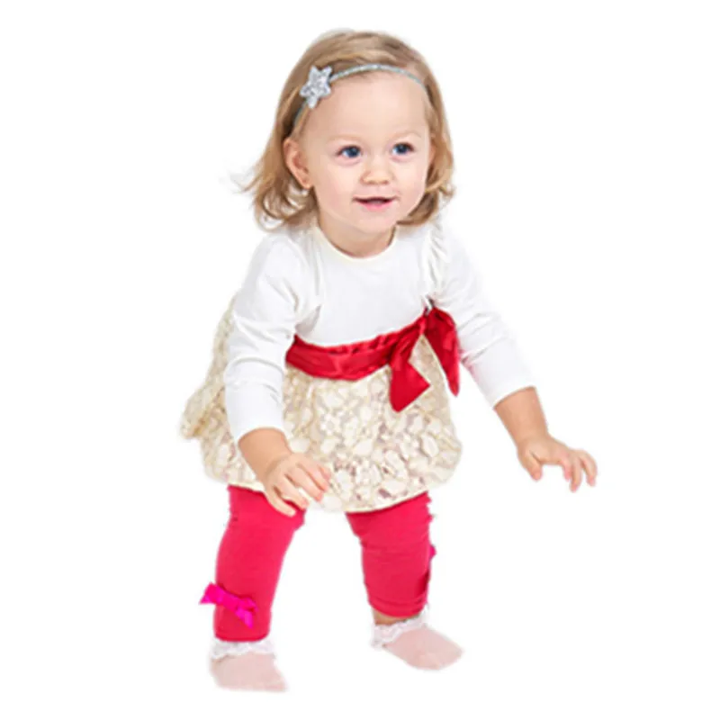 Комплект одежды принцессы для маленьких девочек, кружевные топы и брюки, комплект из 2 предметов, модный костюм с бантом, детская одежда для девочек, платье
