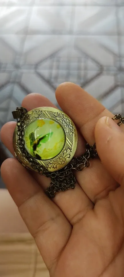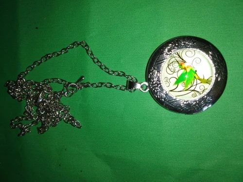 bonito. idéntico a la fotografía, tiene buen tamaño. se abre para que guardes fotografías o cosas pequeñas. la cadena es de buen tamaño. el envío fue rápido