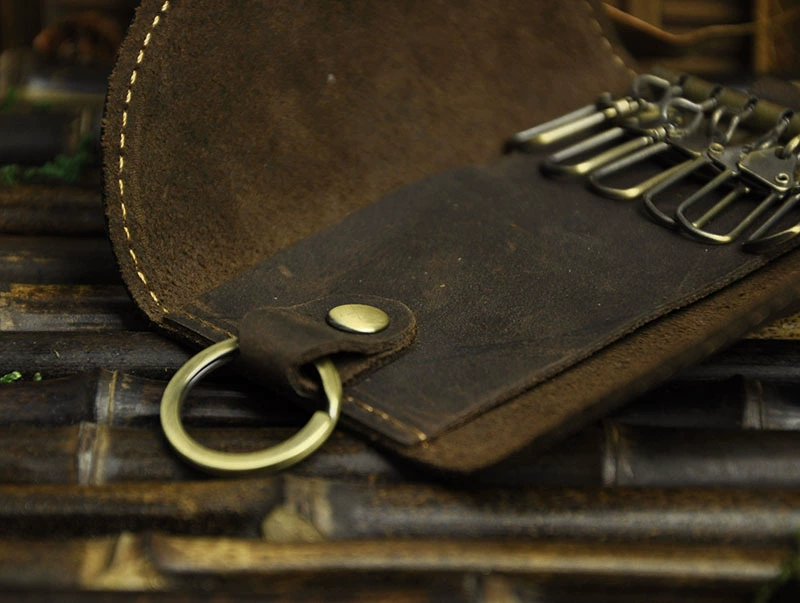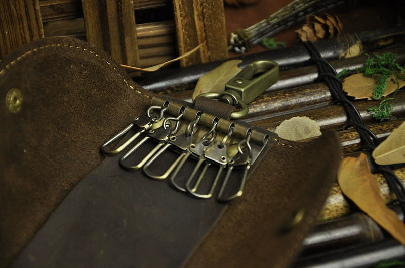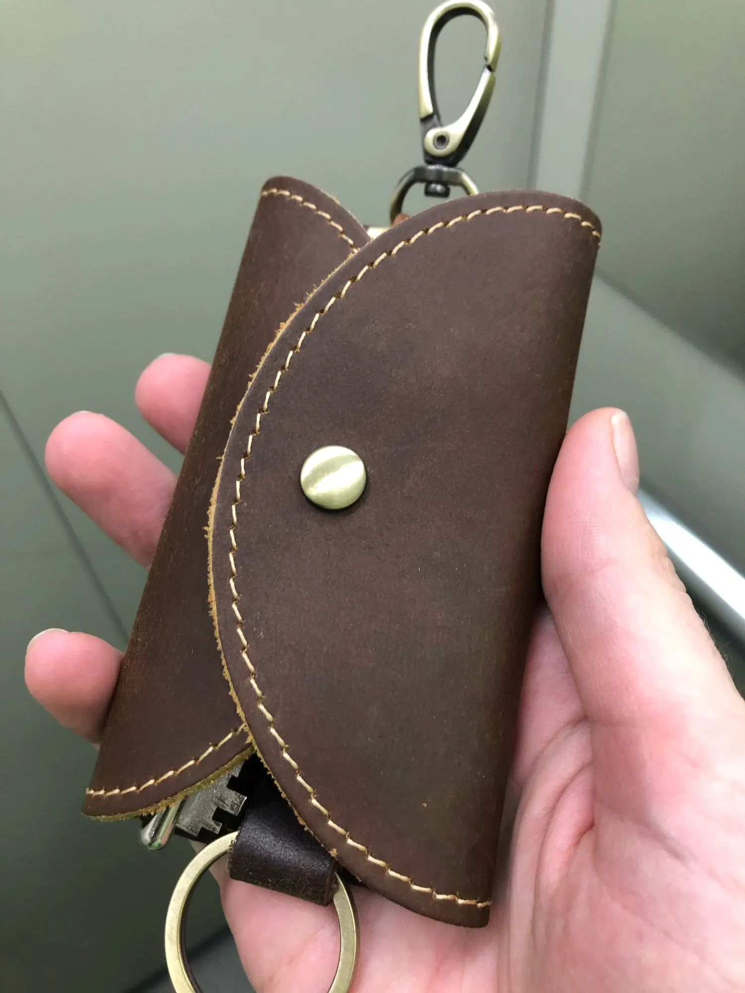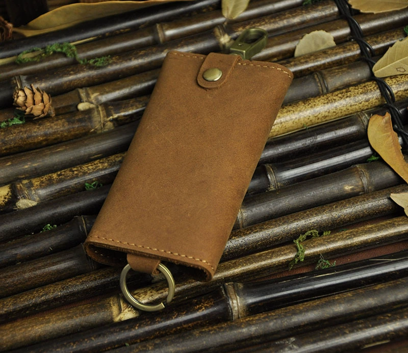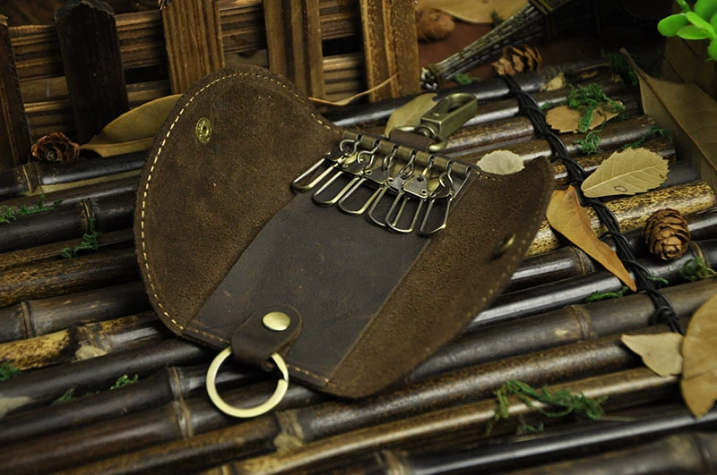 Новинка 2016, высококачественный Мужской винтажный жилет из натуральной кожи, чехол для автомобильных ключей, чехол с кольцом-держателем, кошелек
