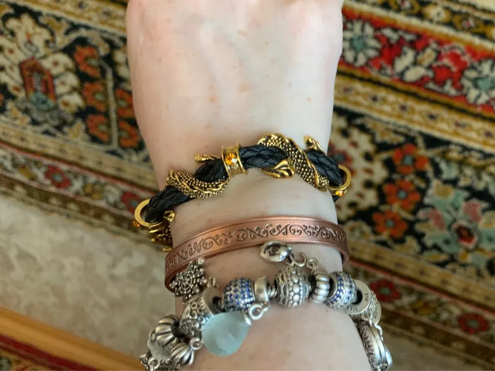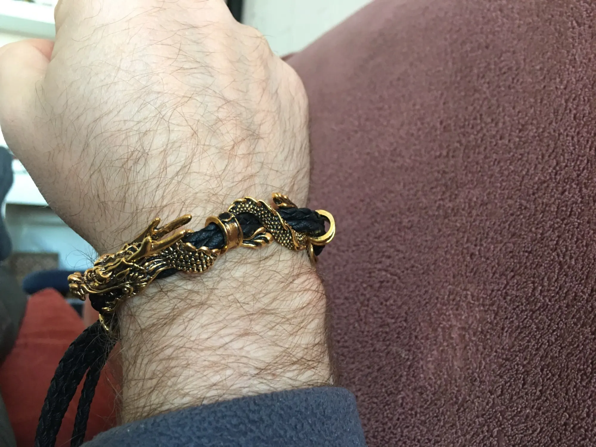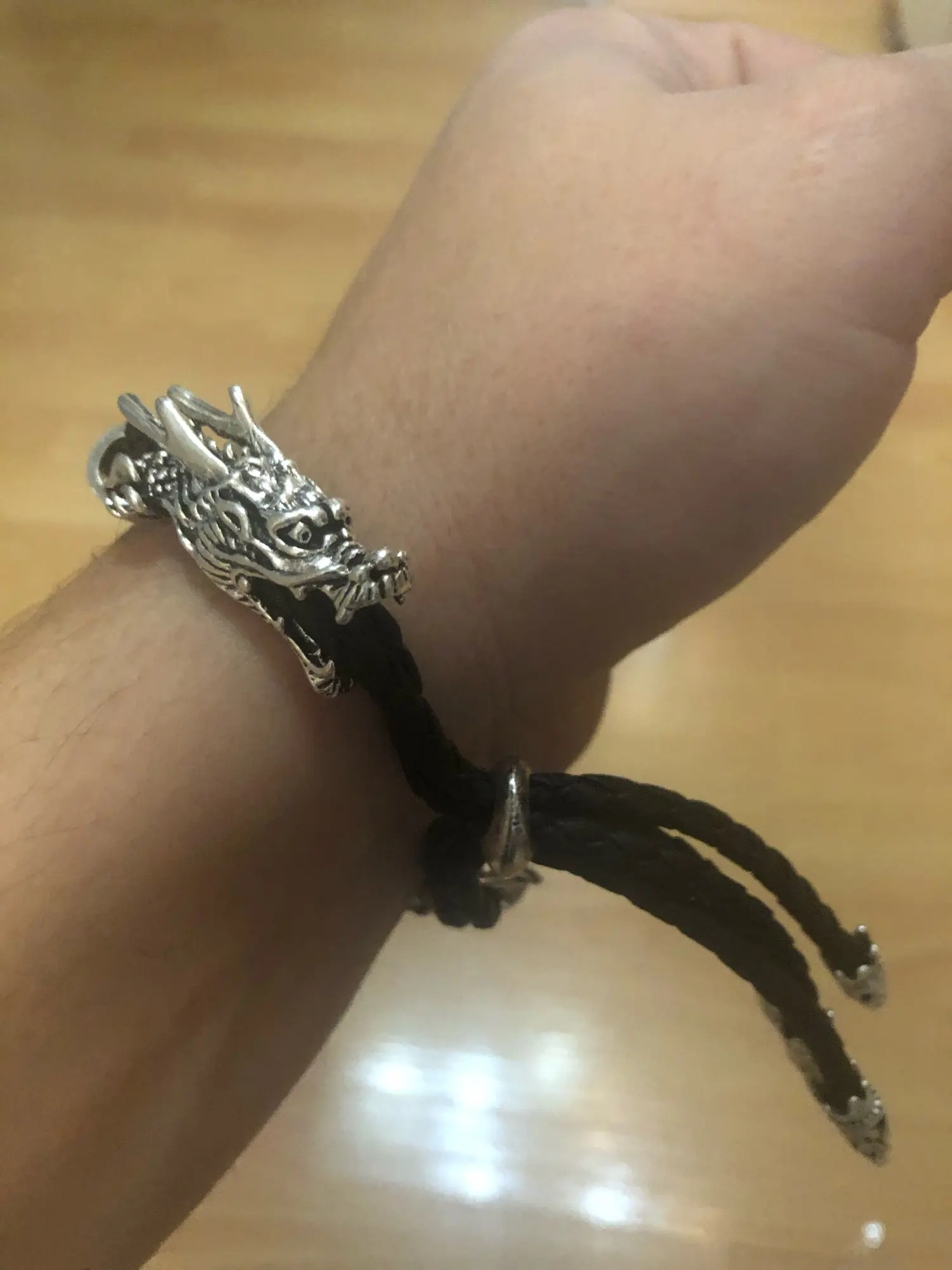 Браслет отличный. Он хоть и мужской, но дочка его выбрала для себя. Хорошо регулируется на тонкую руку. Дракон на браслете просто чудо, очень красивый.