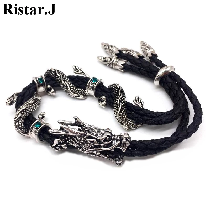 Классический кожаный веревочный мужской браслет с драконом регулируемые винтажные браслеты и браслеты модные украшения мужской подарок