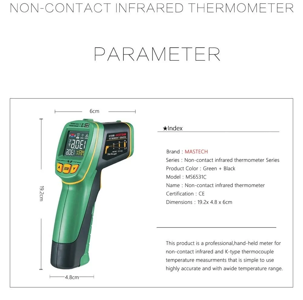 MASTECH MS6531C ручной Бесконтактный инфракрасный термометр, точечный температурный пистолет с термопарой типа K, тестхранение данных icon star icon star icon star icon star icon star
