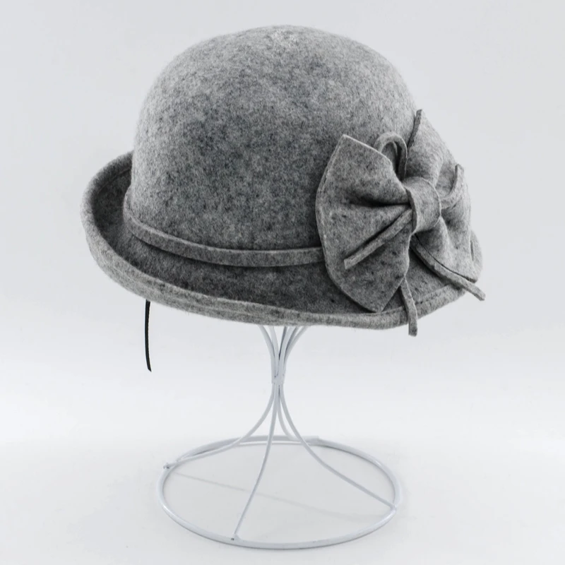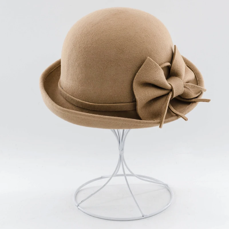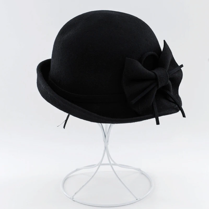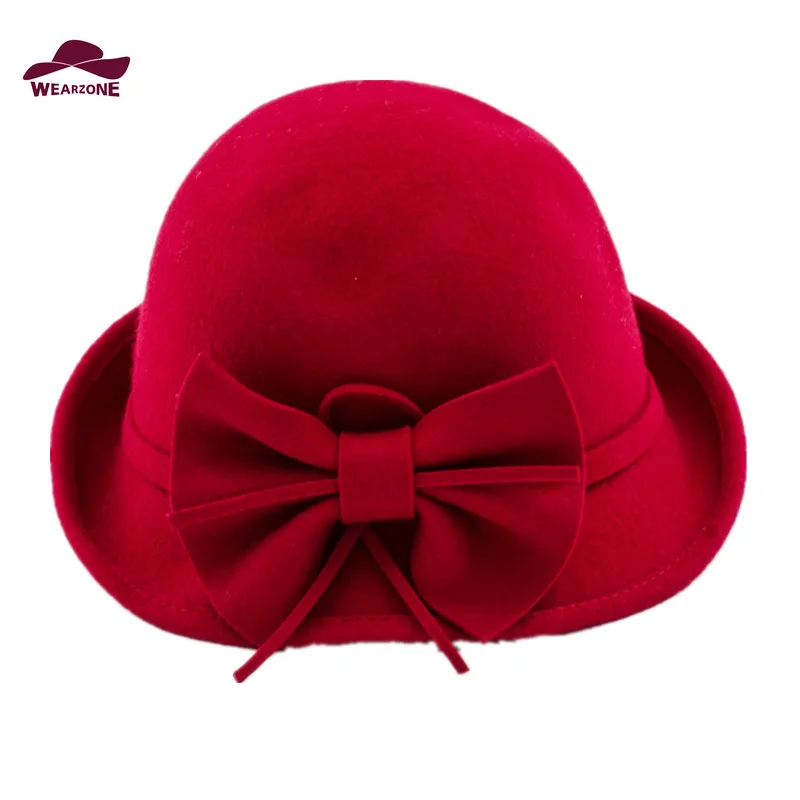 Новинка 2017, зимние шерстяные фетровые шляпы Fedora, женские фетровые шляпы, винтажные церковные шляпы с большим бантом, шапки cappello bombetta, chapeau feutre