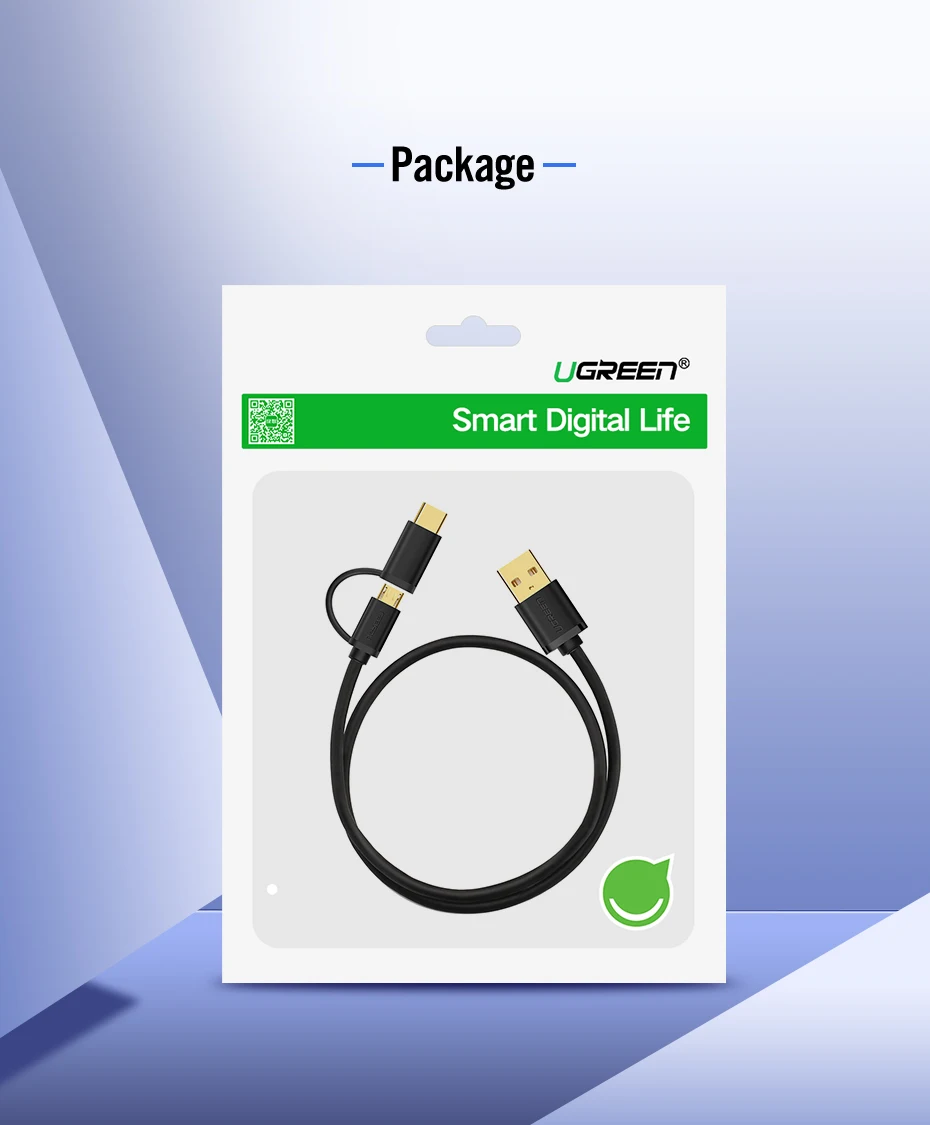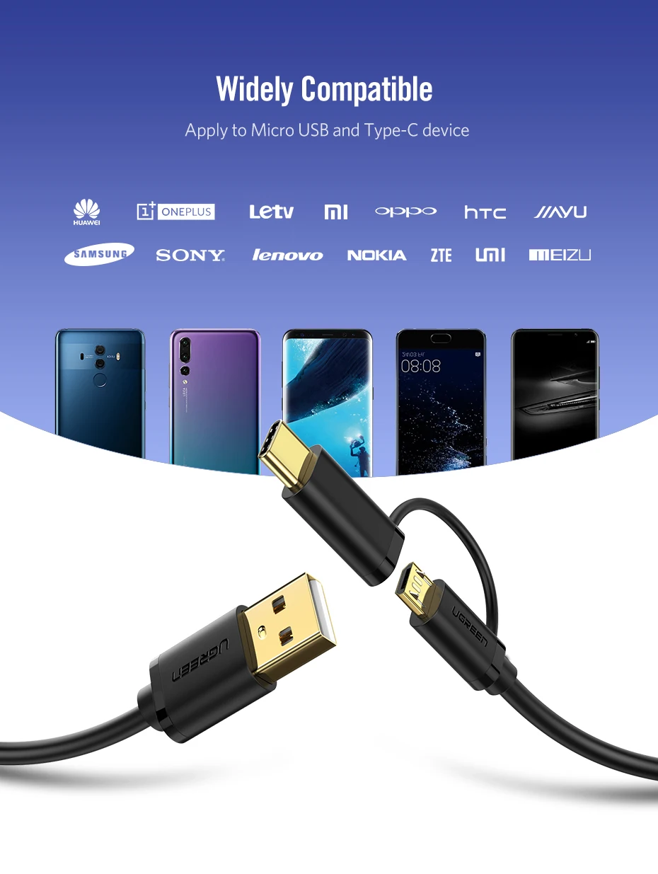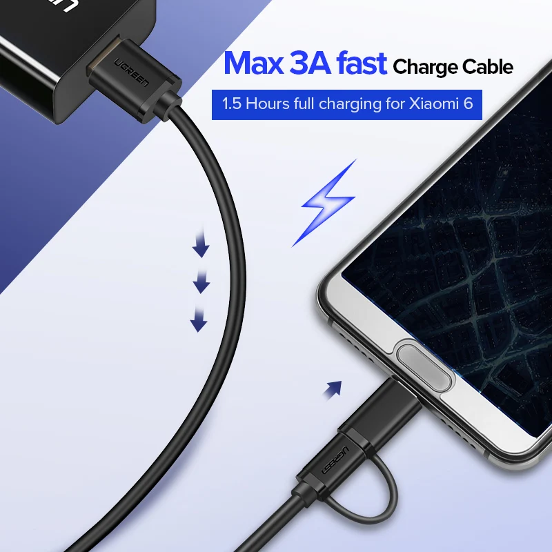 USB кабель UGREEN для смартфонов и планшетов с разъемами Micro-USB, Type-C, длина 0.25-2м