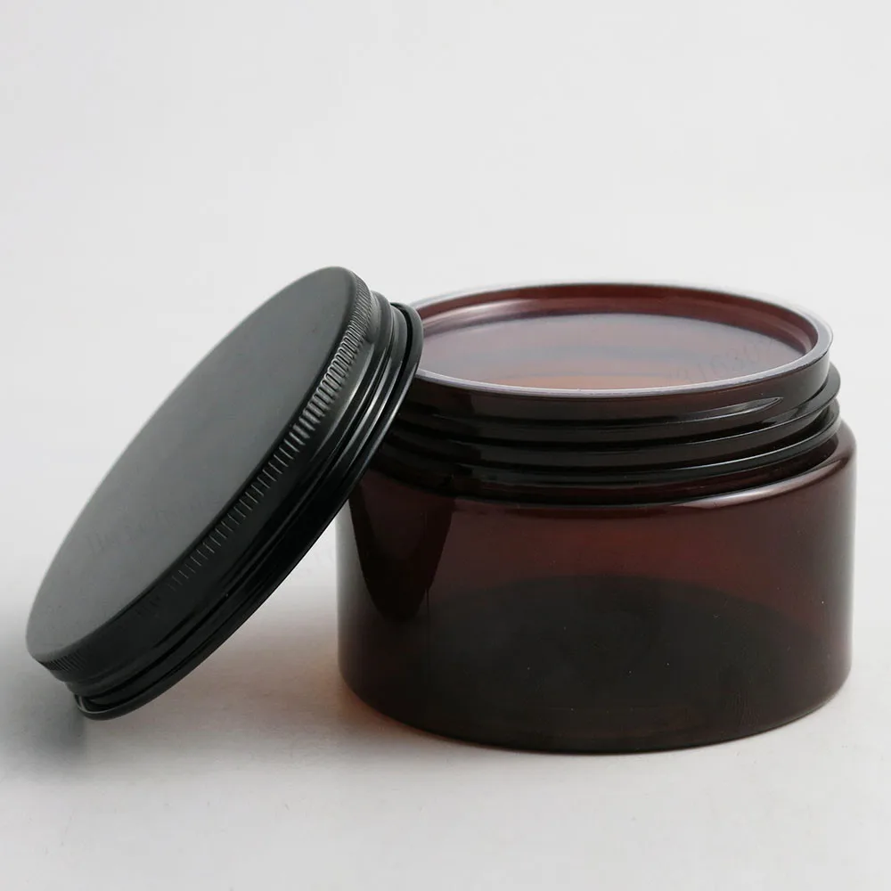 20x120 г Янтарная банка для крема ПЭТ с металлическими крышками, бутылка для крема 4 унции с черными алюминиевыми крышками и внутренней подушкой