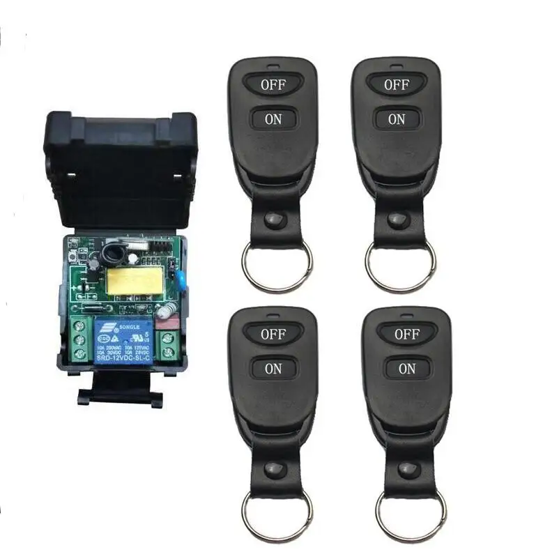 Радиочастотная Беспроводная система дистанционного управления Приемник (переключатель) Рабочее напряжение:AC220V Выходной ток:≤ 10 А Рабочая частота: 315 МГц/433 МГц (частота может быть настроена) Выход: пробежка.Межзамок.Самозамок Тип кода: Обучающий код