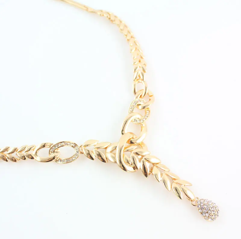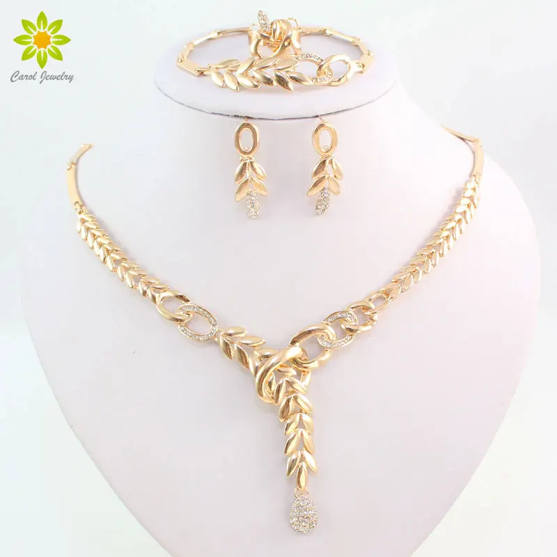 Африканский костюм, ожерелье, серьги, наборы, Модный кристалл, золотой цвет, женский свадебный комплект ювелирных изделий в форме листьев