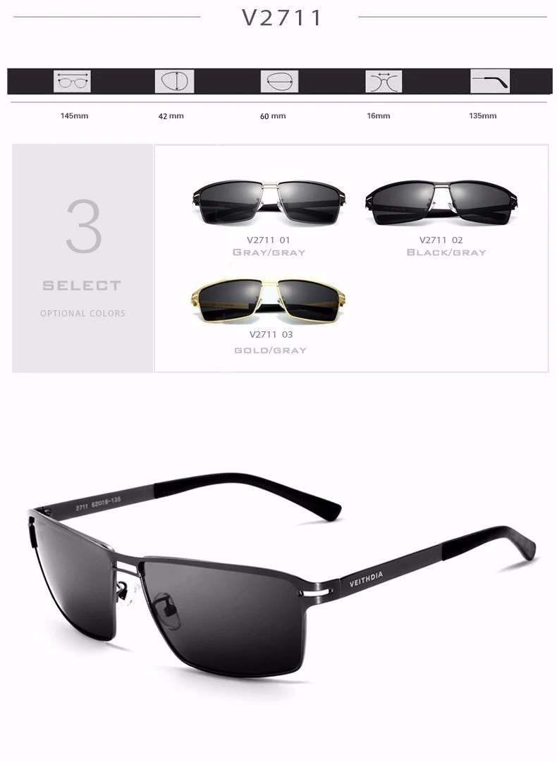 Солнцезащитные очки унисекс VEITHDIA, водительские, спортивные, с поляризационными стеклами, степень защиты UV400, винтажные, 2711