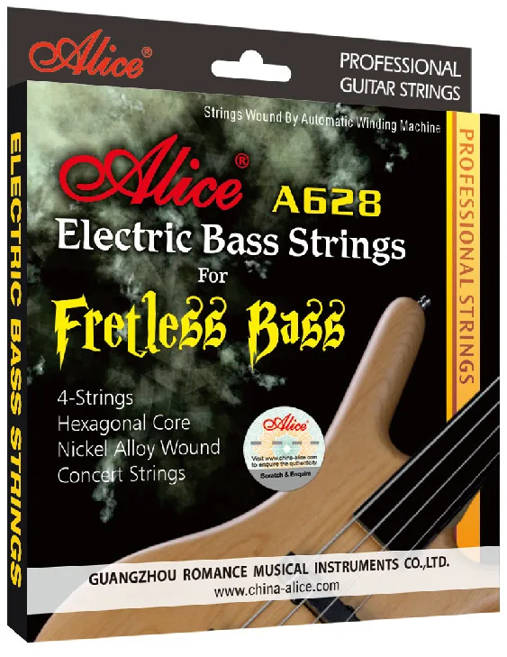 6 комплектов A628 бесконтактные электрические басовые струны (шестигранный сердечник, никелевый сплав, позолоченные шариковые концы, 4 струны)
