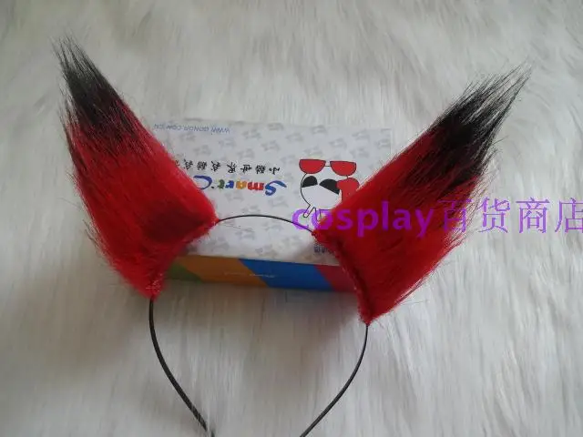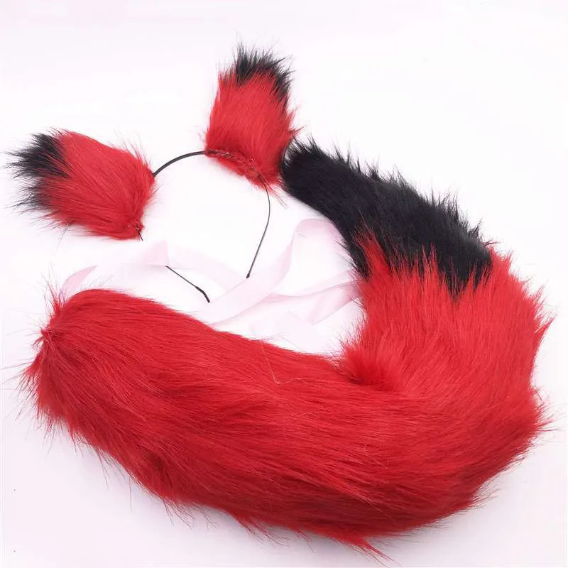 Красный черный плюшевый реквизит для косплея с лисьими ушками и хвостом аниме