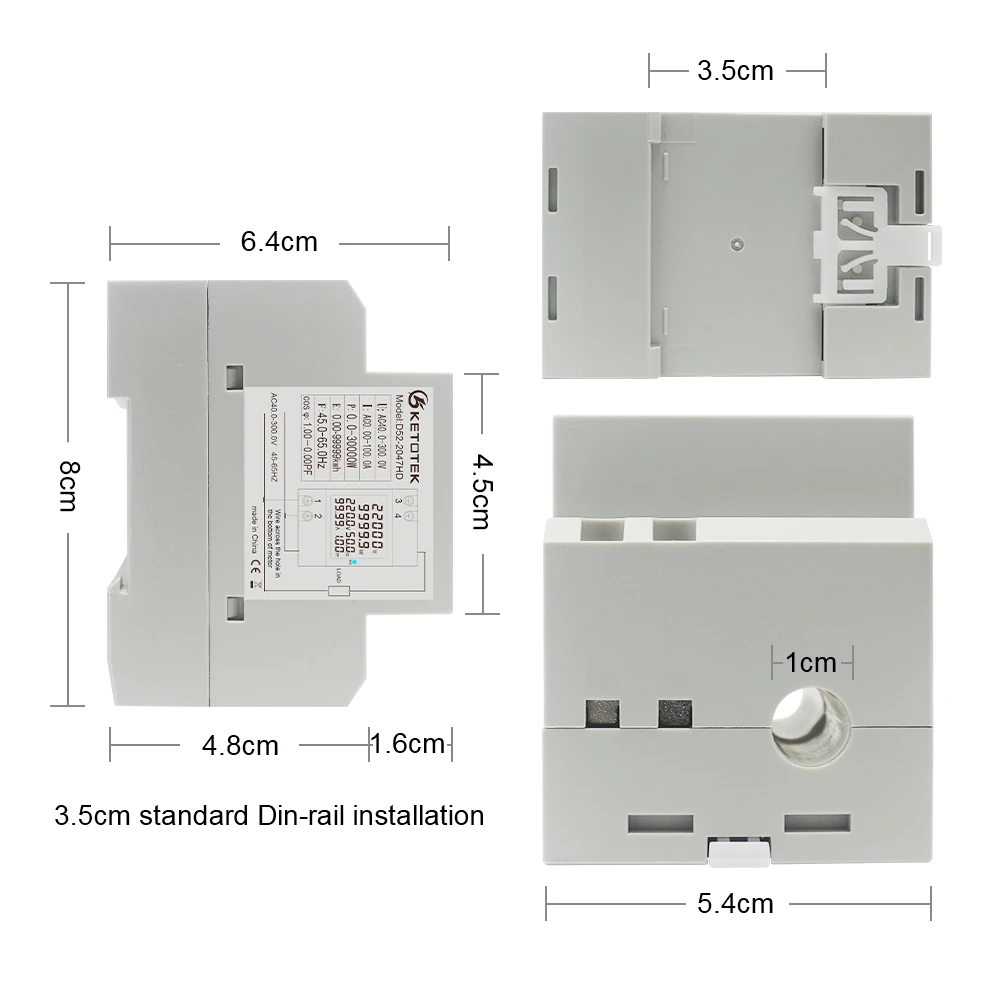 Многофункциональный цифровой счетчик DIN-rail может измерять напряжение переменного тока, переменный ток, коэффициент мощности, активная мощность, электрическую энергию и одновременно. Измеритель имеет цветной, полный вид, ЖК-дисплей высокой четкости для отображения параметров измерения.