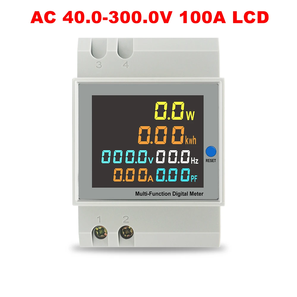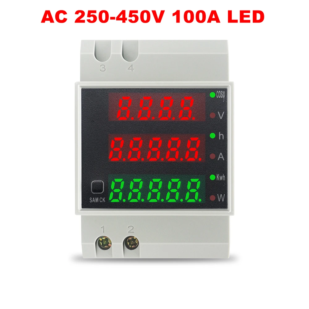 Din рейка двойнаяДисплейСветодиодныйАмперметр ВольтметрAC 80-300V 0-100.0AНапряжение тока Мощность Время энергии тестер 4 цифры 3 в 1