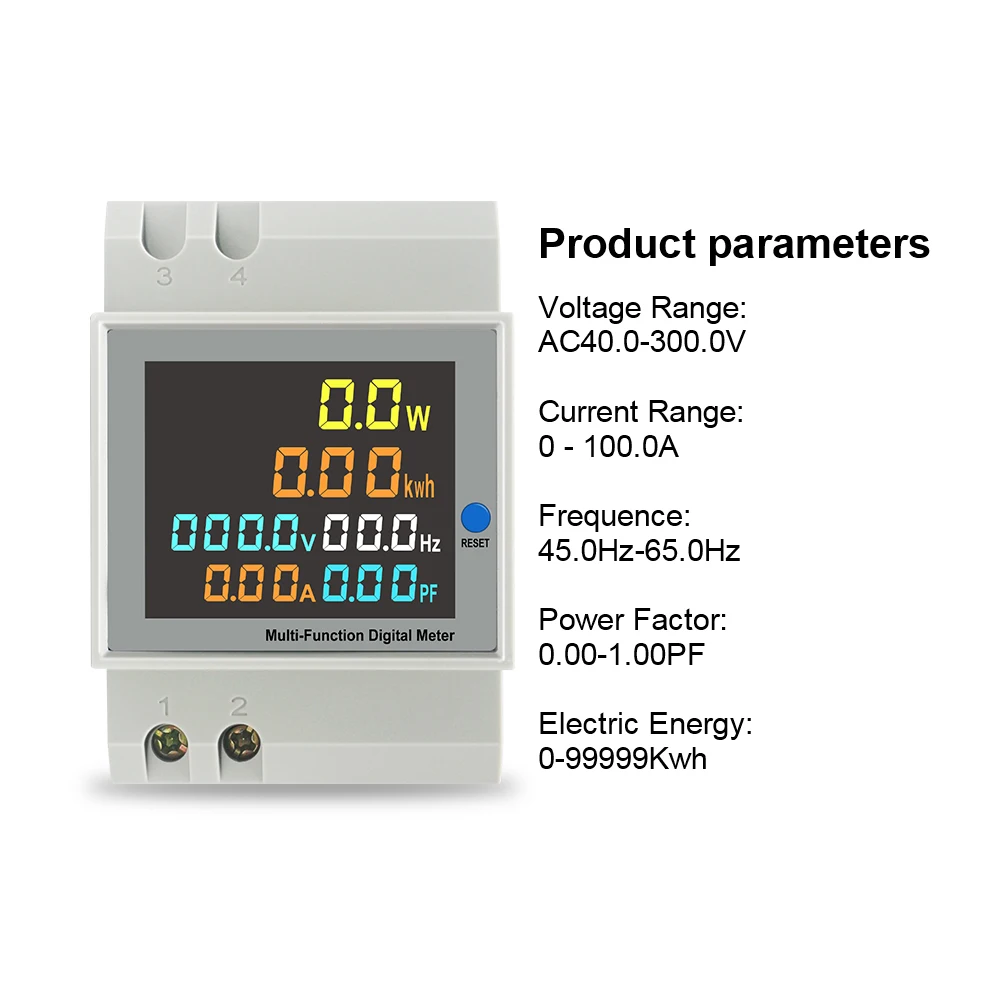 AC 80-300 В 0-100.0A din-рейку светодиодный Вольтметр Амперметр красные, синие Дисплей Active Мощность фактор счетчик энергии Напряжение вольт измеритель тока
