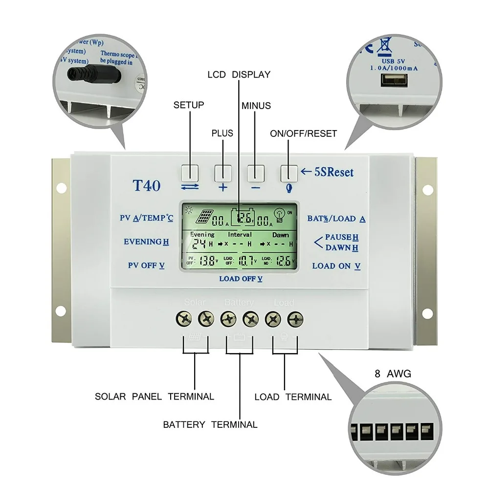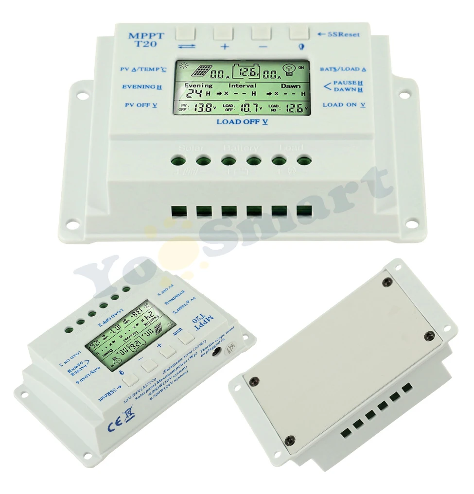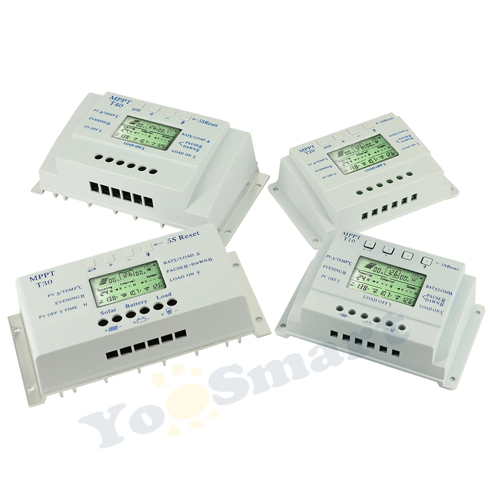 Регулятор заряда солнечной батареи MPPT, 10 А, 20 А, 30 А, 40 А, 12 В24 В, автоматический регулятор заряда батареи, ЖК-дисплей, двойной таймер управления T10, T20, T30, T40