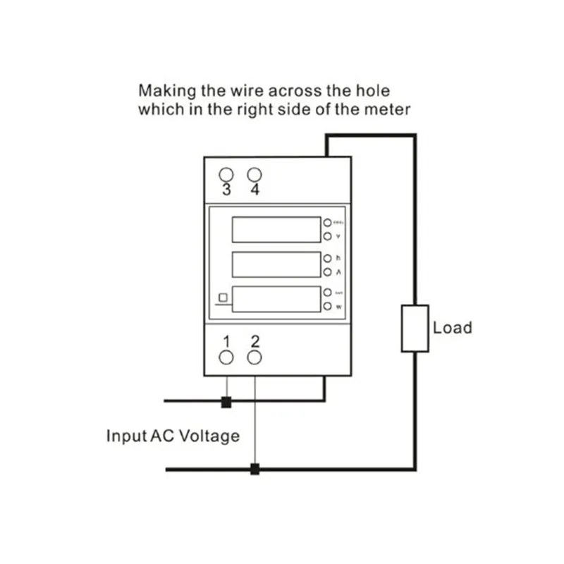 3. Соединения счетчика с внешним трансформатором тока как график 2. Проденьте провод через отверстие в счетчике и Подключите два провода вторичного трансформатора к 3 и 4 клемме.