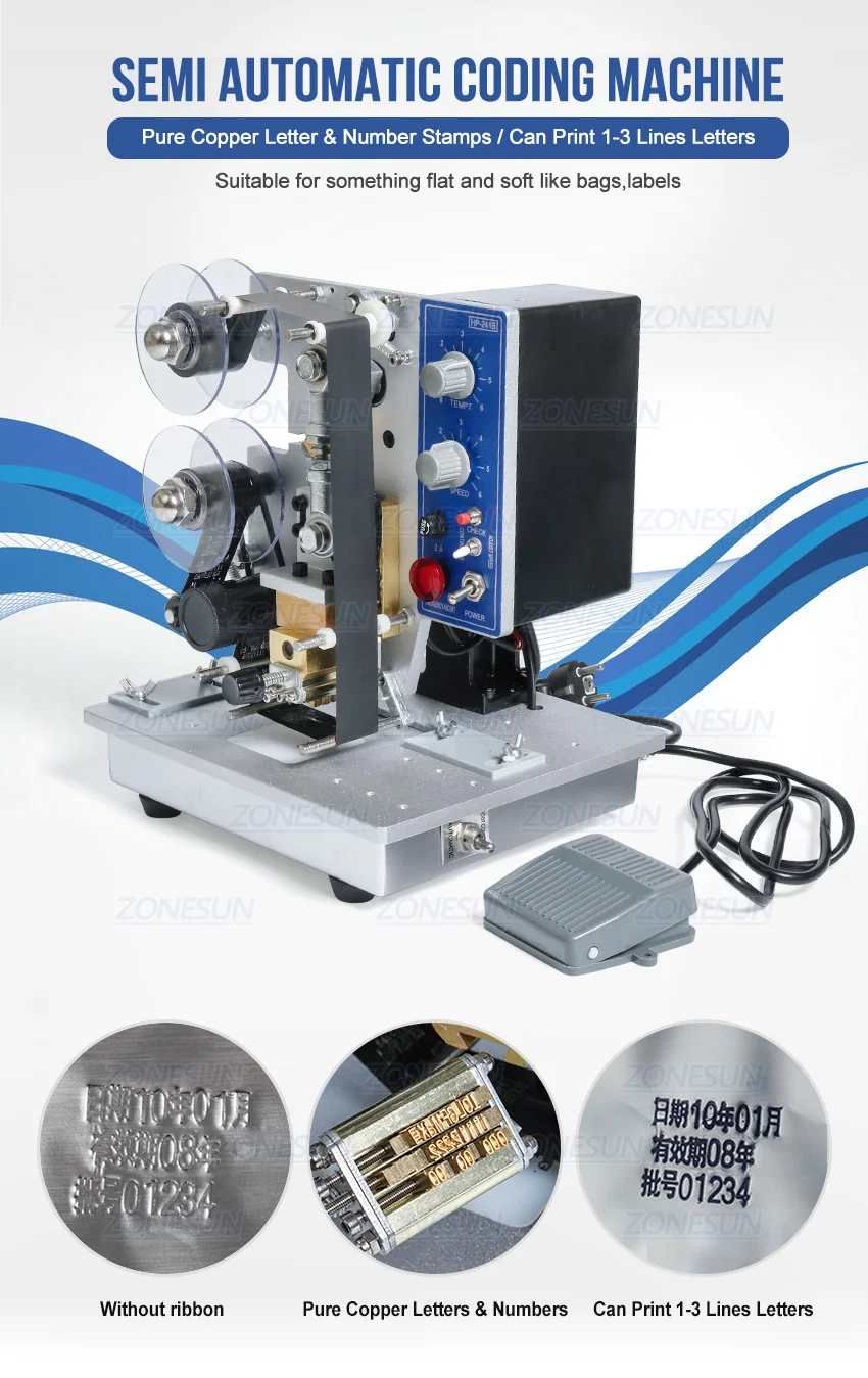 Полуавтоматический принтер ZONESUN с горячим штампом, принтер HP-24...
