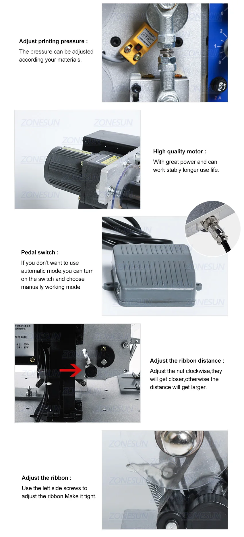 Полуавтоматическая электрическая лента ZONESUN для печати кодов, ленточный принтер, кодер, цвет, лента, Горячая печатная машина, Тепловая лента