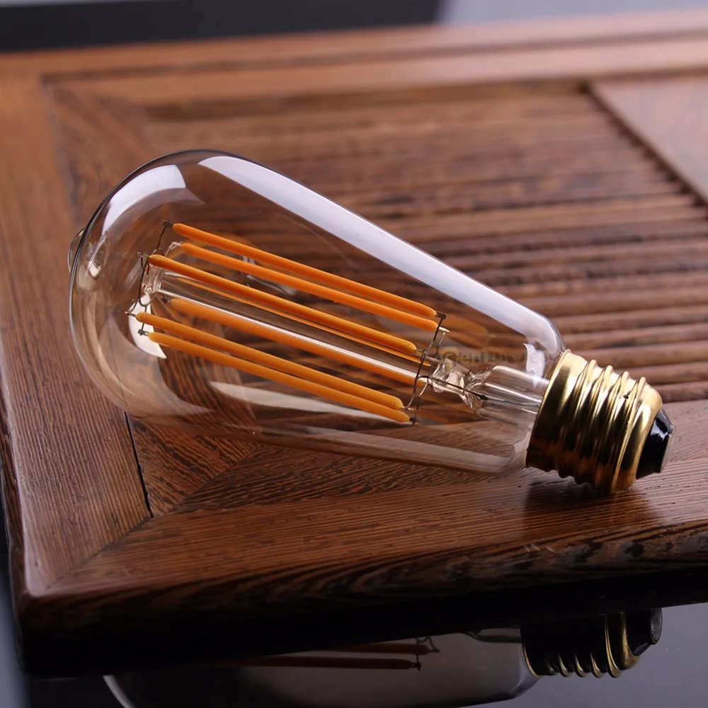 Grensk ST64 жемчужный Тип 6 Вт Ретро светодиодный с регулируемой яркостью Длинные лампы накаливания винтажный Эдисон Золотой светодиодный светильник энергосберегающая лампа супер теплый 2200 к E26 110 в E27 220 В заменить 50 Вт лампа накаливания декоративный светильникОписание товара:Модель:ST64 светодиодный золотой оттенок нити