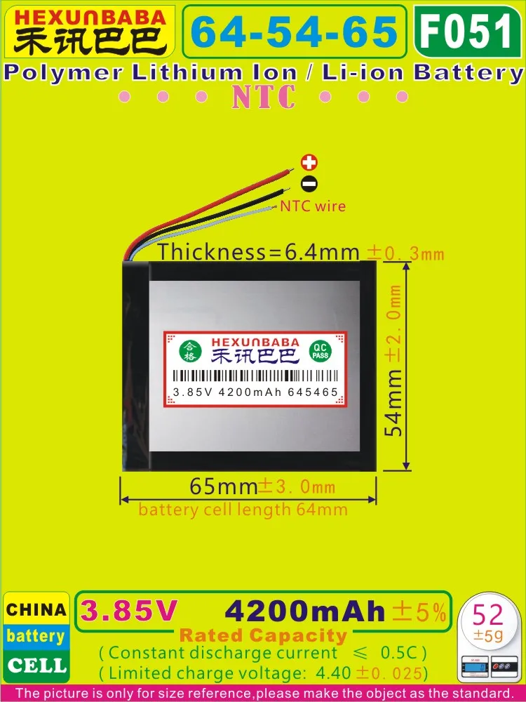 F051 3,85 V, 3,8 V, 3,7 V 4200 mAh 645465 полимер литий-ионныйлитий-ионный аккумулятор для power bank; планшетный ПК, мобильный Банк icon star icon star icon star icon star icon star