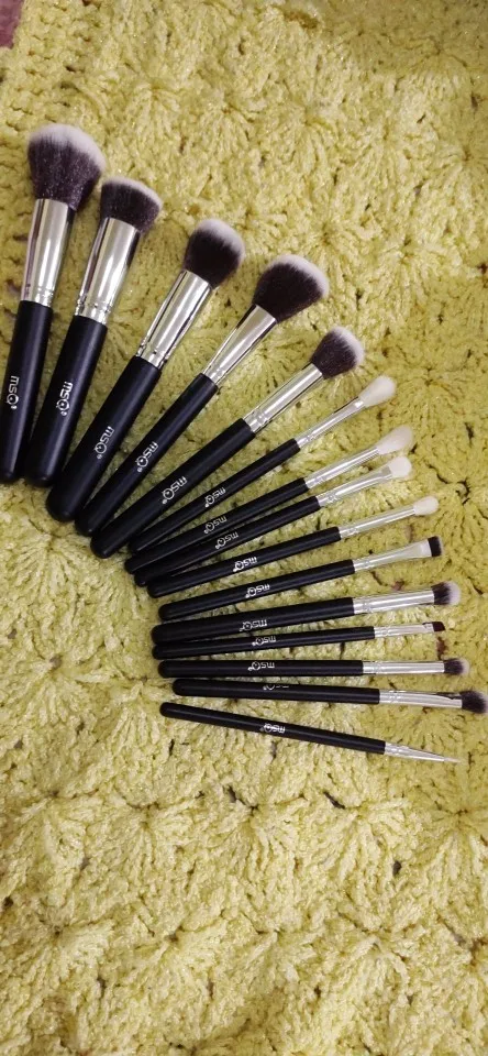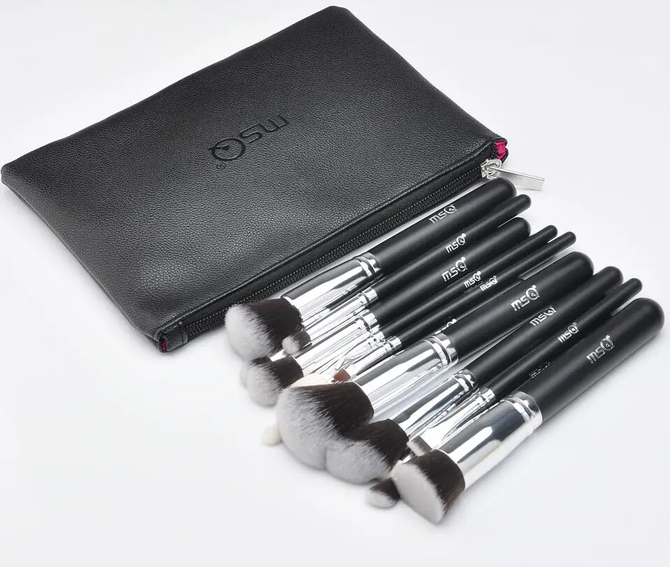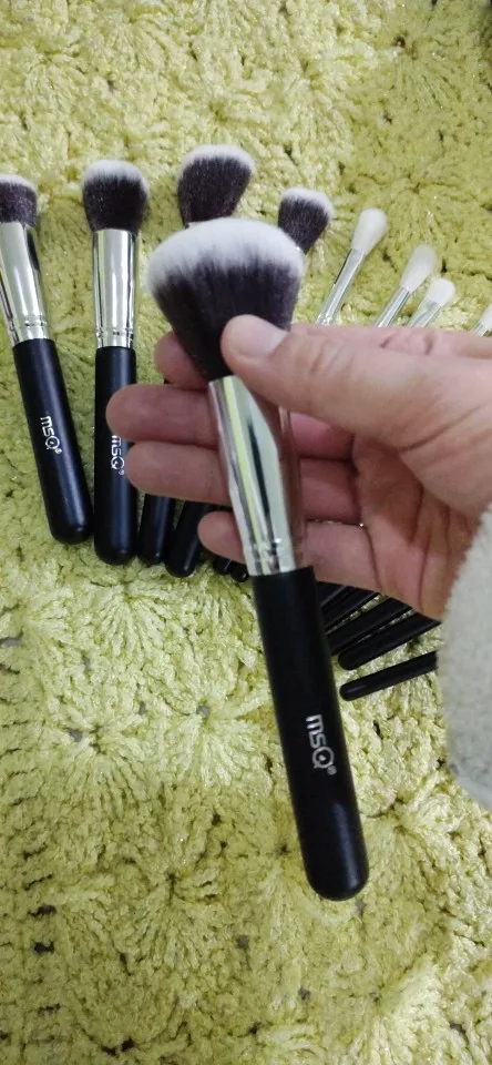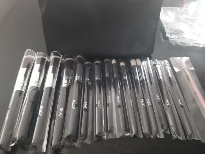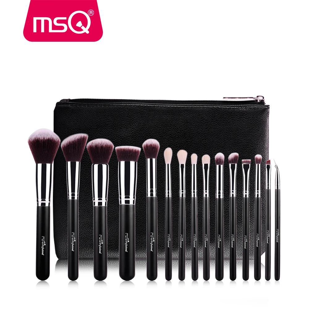 MSQ Pro 15 шт. Макияж Расчёски для волос комплект Косметическая пудра Основа тени для век Make Up Расчёски для волос Косметика Мягкие Синтетические волосы с ПУ кожаный чехол