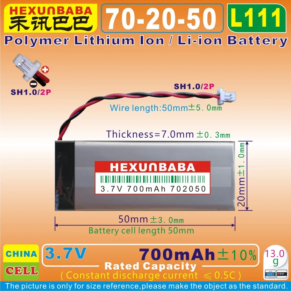 2 шт. L111 3,7 в 700 мАч 702050 полимерный литий-ионныйлитий-ионный аккумулятор для металлоискателя XP Deus WS1 WS2 WS3 WS4 WS5