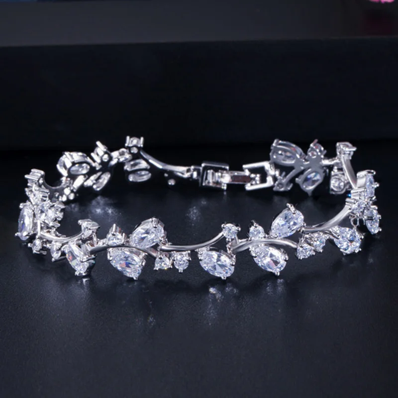Pera 6 цветов s варианты серебряный цвет зеленый камень лист и цветок Большой Кубический Цирконий Шарм браслет браслеты ювелирные изделия для женщин B043