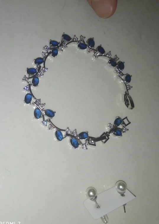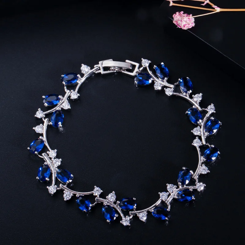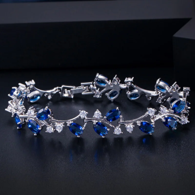 Браслет-цепочка Женский, серебристый, темно-синий, с фианитами