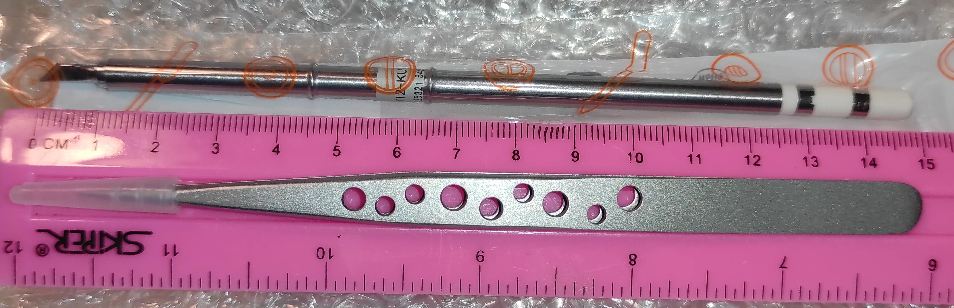Замовили 2021-06-21; Відправив продавець 2021-06-25; Отримано у Києві 2021-07-14. Трек прослідковувався на усьому шляху, від продавця до мене, прийшло НовоюПоштою, звичайний поліетиленовий пакет, а у ньому купа інших посилок. Пересилання посилки швидке, нічого не пошкодилось. Картридж справний, температура не гуляє. Маленьке скошене жало, схоже на T12-K, але в вдвічі менше, зручніше паяти маленькі SMD компоненти. Не тьмяніє, нагрівав до 450 градусів протягом 20 хвилин. Також отримав заміну бракованого пінцета, який замовляв раніше. Продавець чемний і дбає про своє ім'я, висилає повторно той товар який виявився бракованим. Товар гарний, можна сміливо замовляти.