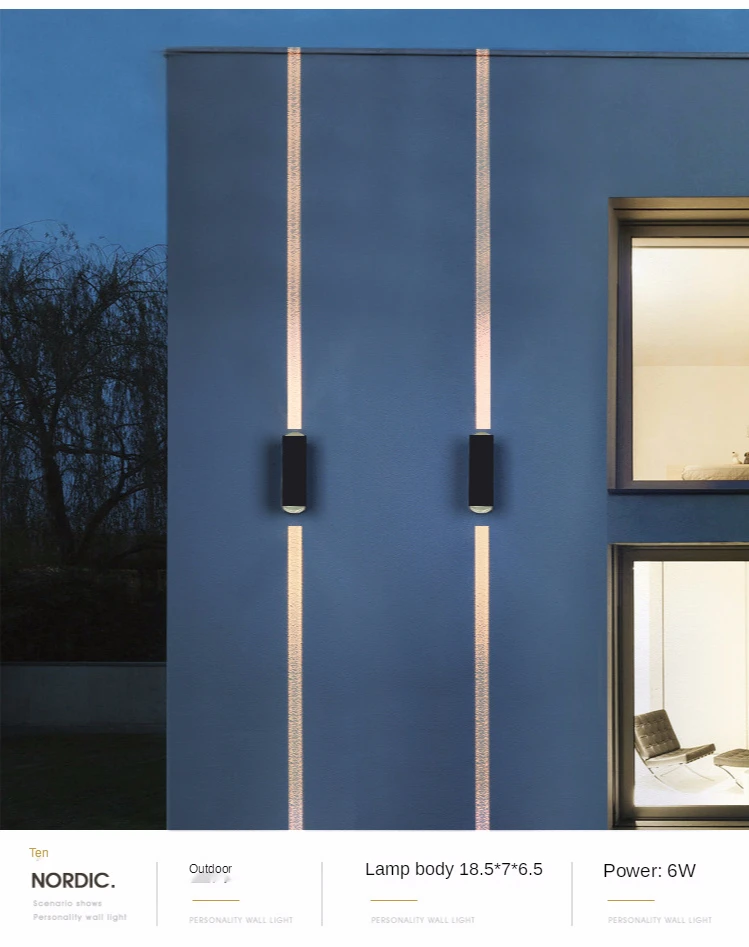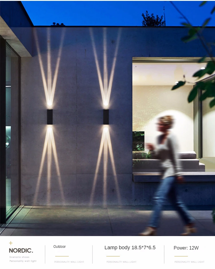 Светодиодная узкая наружная настенная лампа Cree, черная , 15 градусов , крыльцо, IP65, светильник со светодиодом