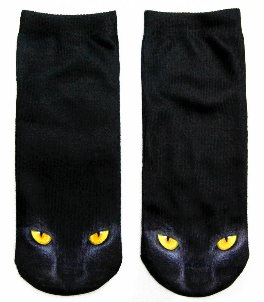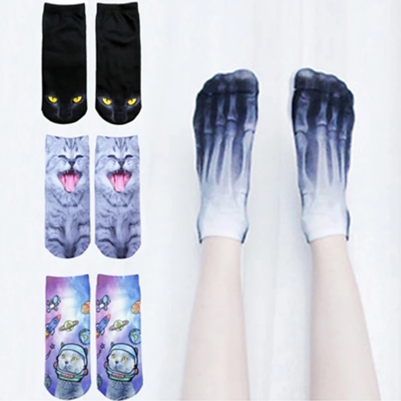 Носки мужские короткие с 3D принтом, хлопок, носки скелет, с рисунком кошки