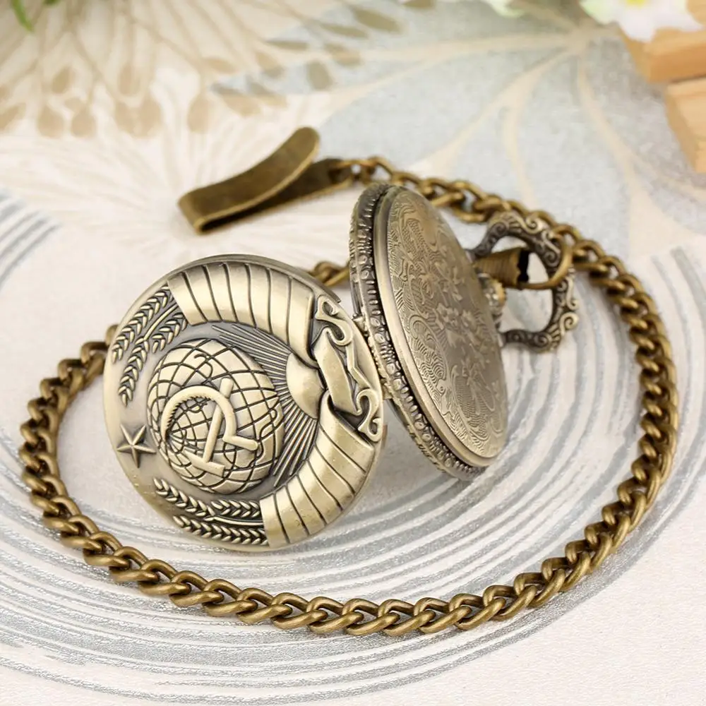 Античная бронза советский Серпы Молотки Стиль карманные часы с Цепочки и ожерелья цепь Xmas Best подарок для Для мужчин Для женщин Бесплатная доставка