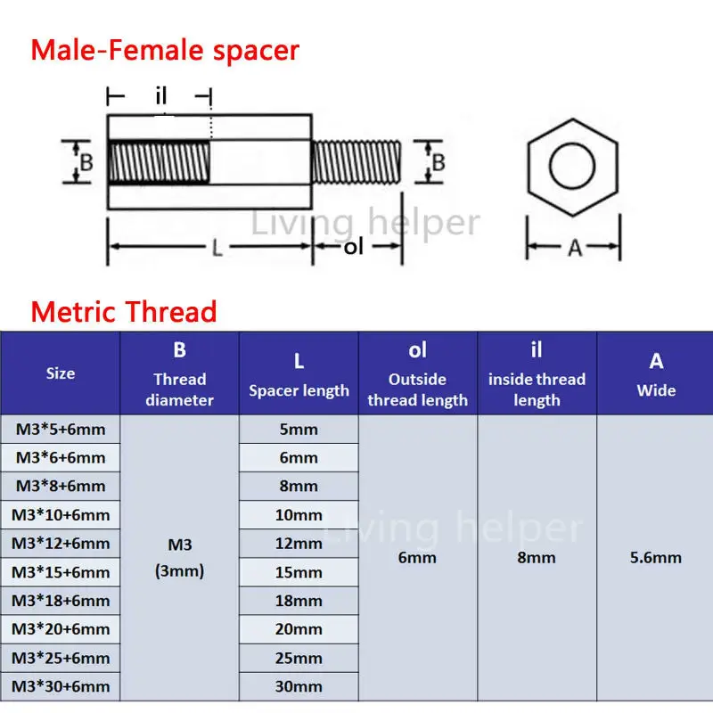 Страна: NL Dimensions: Male Female M3X6mm Доставка: Cainiao Super Economy Global 12.10.2020
