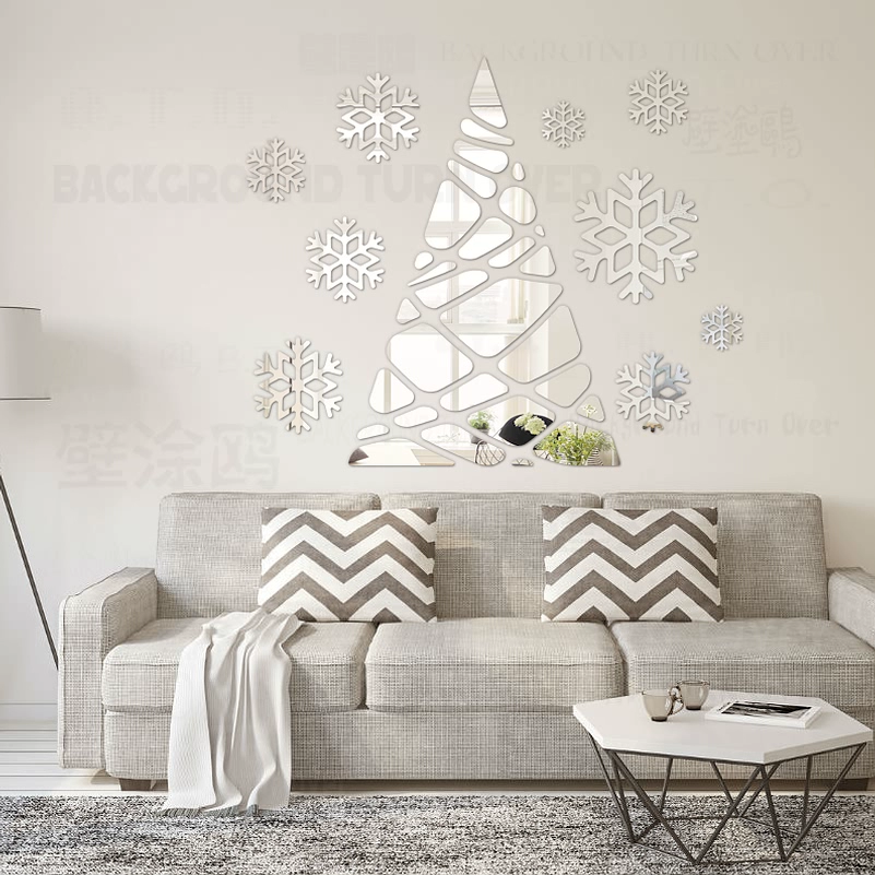 Зеркальные наклейки на стену, стикер для спальни, снежинки, сосны, Рождества, Рождества, 2019, Рождества, Нового года, 2020, украшения для деревьев, растений, R131