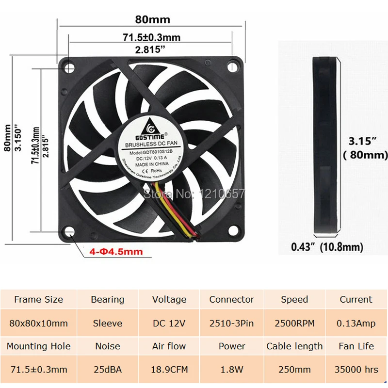 2 шт. Gdstime 3Pin 8 см 80x10 мм 80 мм x 80 мм x 10 мм DC 12 В бесщеточный кулер вентилятор охлаждения ЦП
