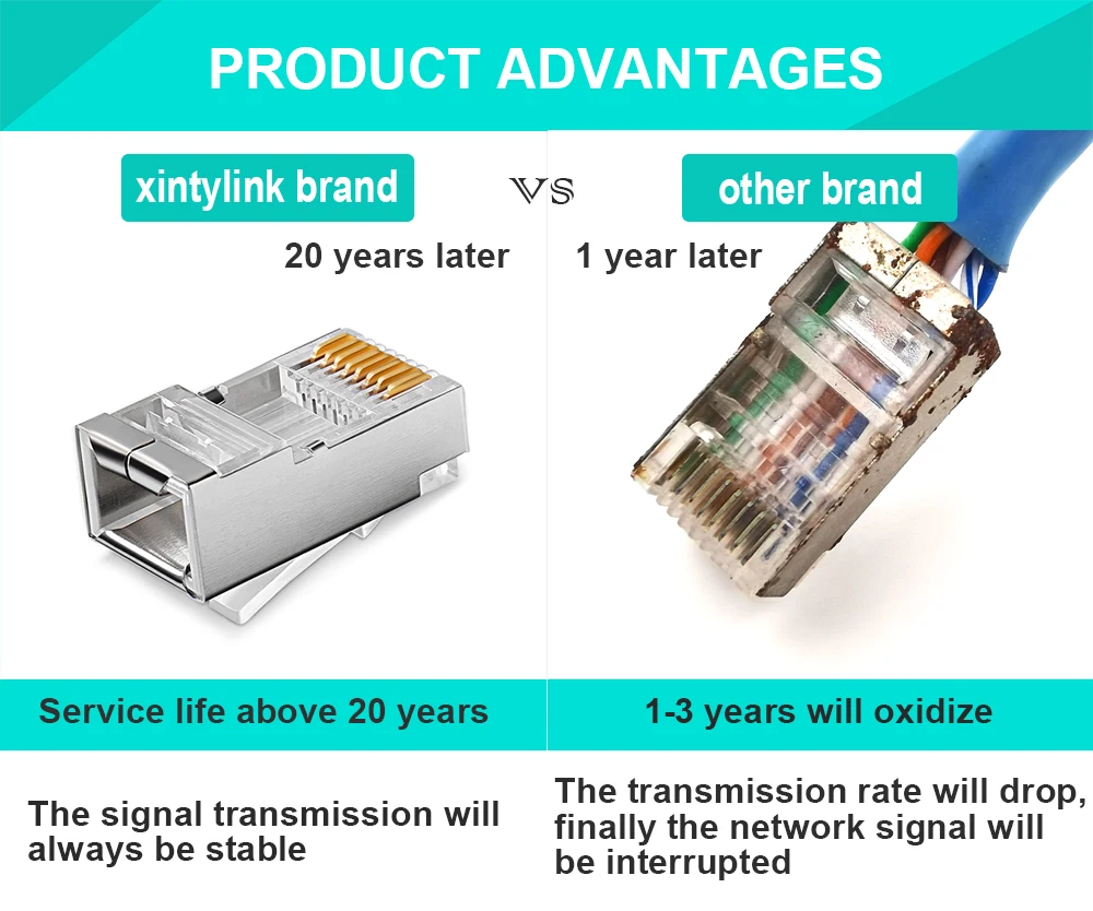 Разъем xintylink rj45 cat6, SFTP, FTP, STP, для сетевого кабеля ethernet cat5e, cat5, rg, rj 45, cat 6, металлический экранированный Разъем lan 50U6U