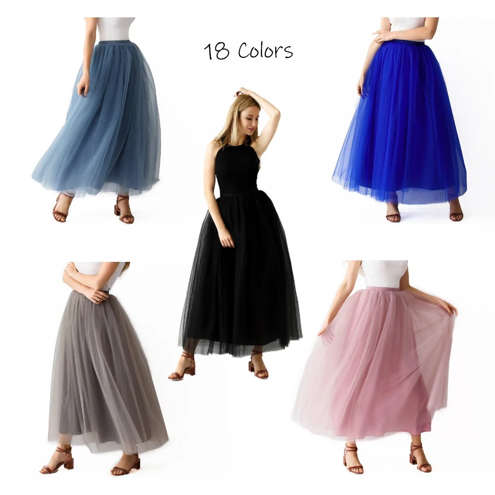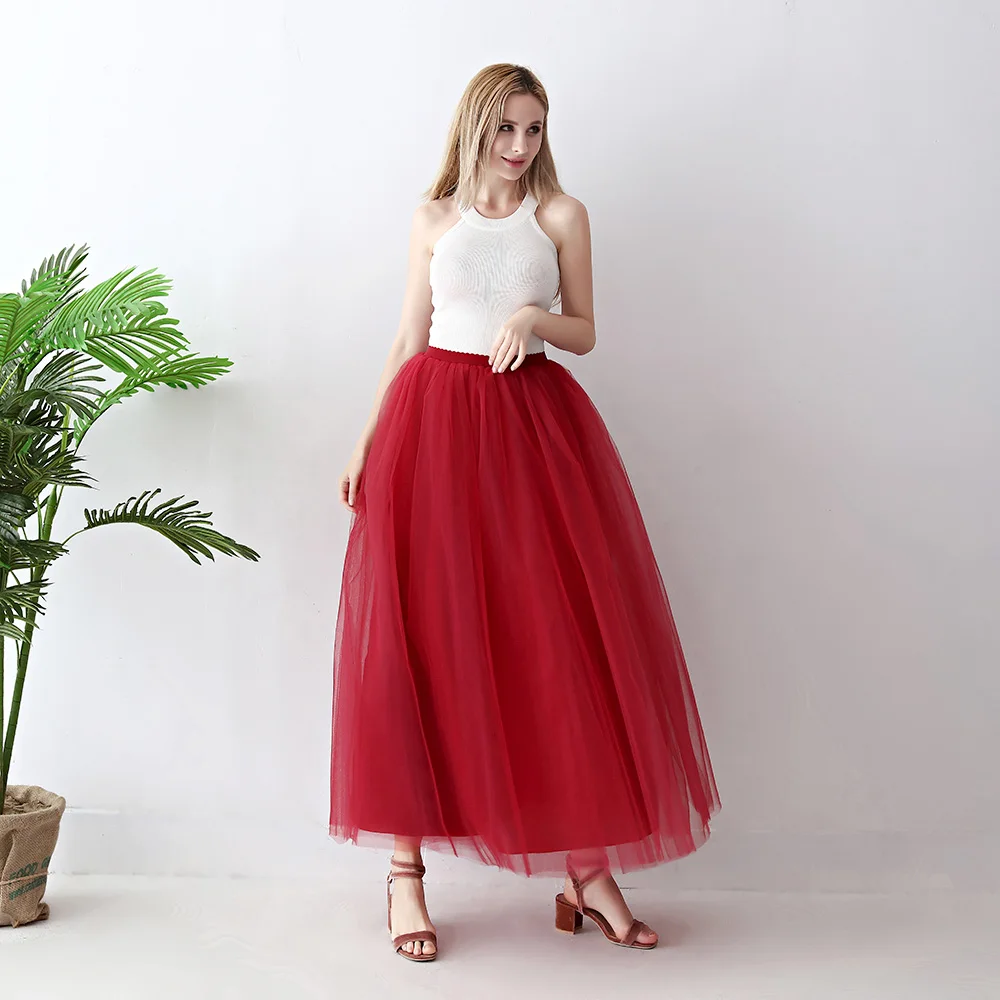 Женская Тюлевая юбка Treutoyeu, Длинная свадебная юбка, 5 слоев, свободного размера