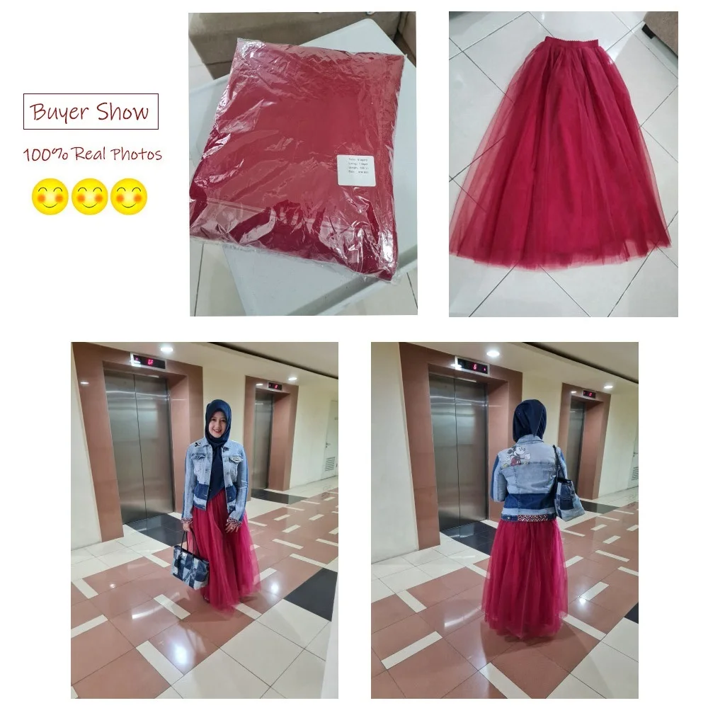 the skirt are so pretty, really voluminous and poise, the tulle fabric are good also, the red colour ia better than I imagine it's really beautiful .. not too red not a maroon also just right in the middle ... Alhamdulillah