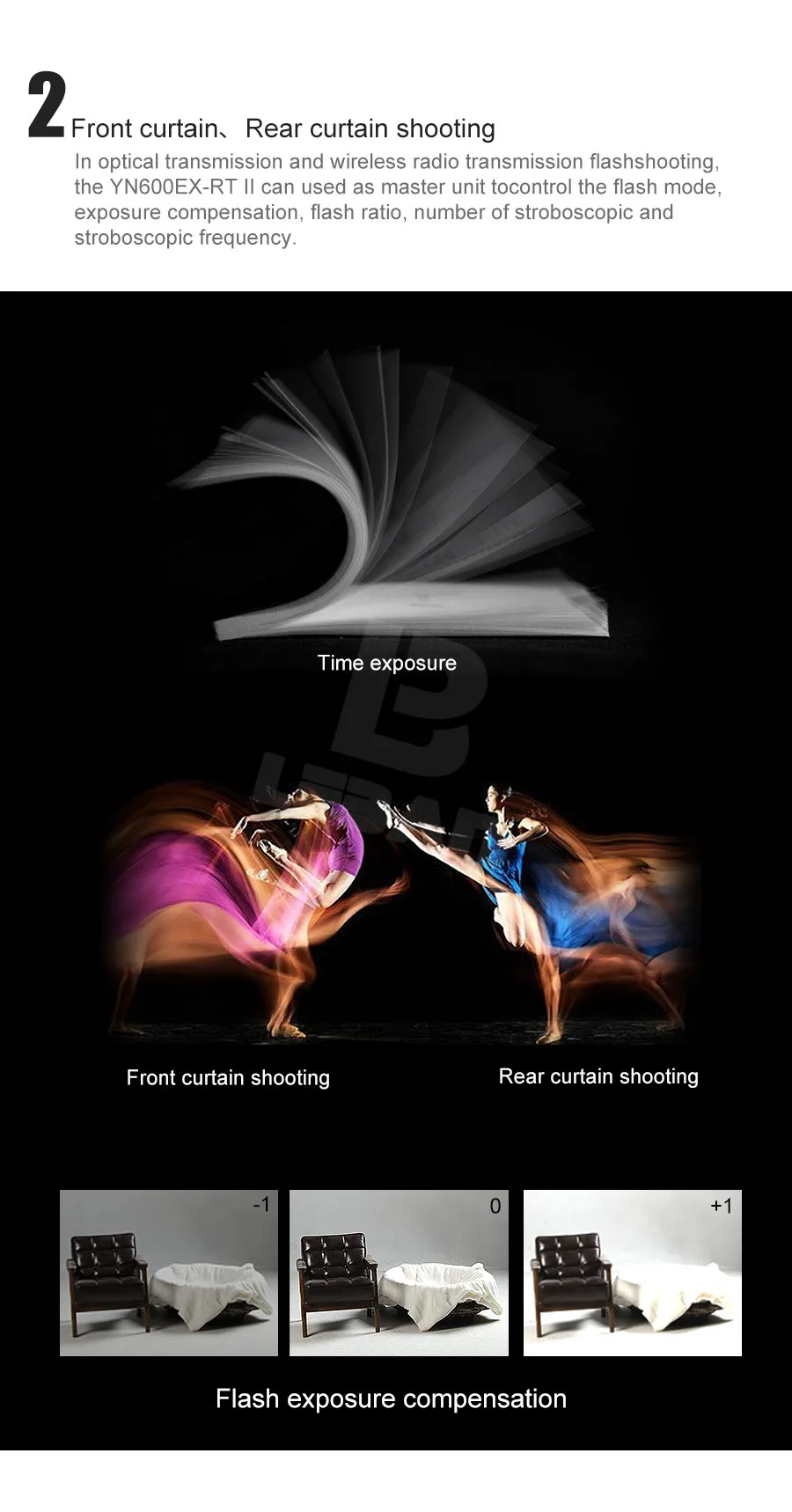 YN600EX-RT поддерживает автоматическое и Ручное Масштабирование, покрытие вспышки может быть изменено между автомобилем, 20 ~ 200 мм.