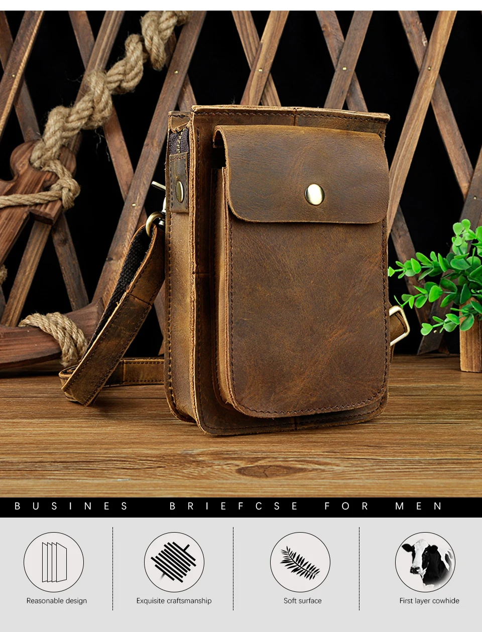 Многофункциональная Повседневная модная маленькая сумка-мессенджер из кожи Крейзи Хорс, дизайнерская поясная сумка для телефона 021