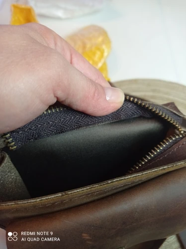 Симпатичная сумка, но я думала, что она вся будет из толстой кожи. На самом деле нет. Боковины основного кармана и полоски вдоль молнии - это либо спилок, либо прессовка, то есть сумка из кожи разного качества. Сначала мне вообще показались эти части кожзамом, но микроскоп помог разобраться. Не понимаю только, зачем к натуральной коже изнутри приклеивать подкладку. Да потому что замшевая сторона сыпется! Ну хрен с ним, за 980 рублей... И клапан внешнего кармана пришит косо. Xiaomi redmi note 9 во внешний карман не влезает. Но цвет сумки очень красивый, как я хотела. Носить буду. Косяки видны только если присматриваться. Но всё же как-то не приятно, когда ожидаешь одно, а получаешь другое.